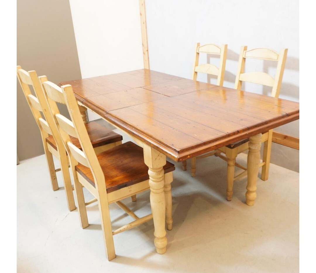 アメリカの本物の古材を利用してオーダーメイドで作られるテーブルト椅子4脚のセット