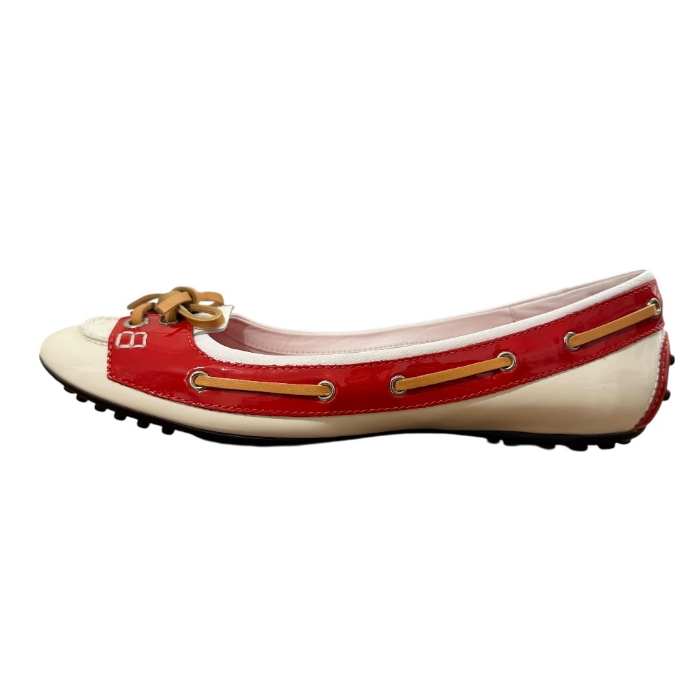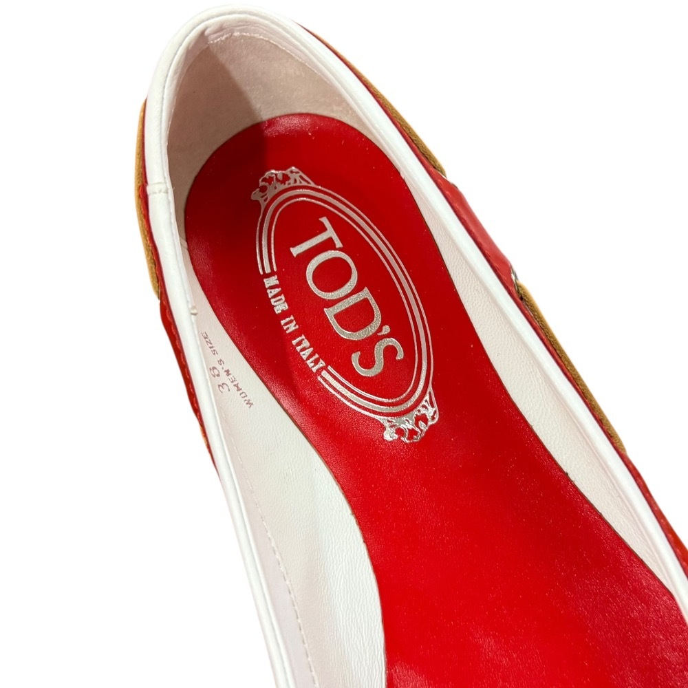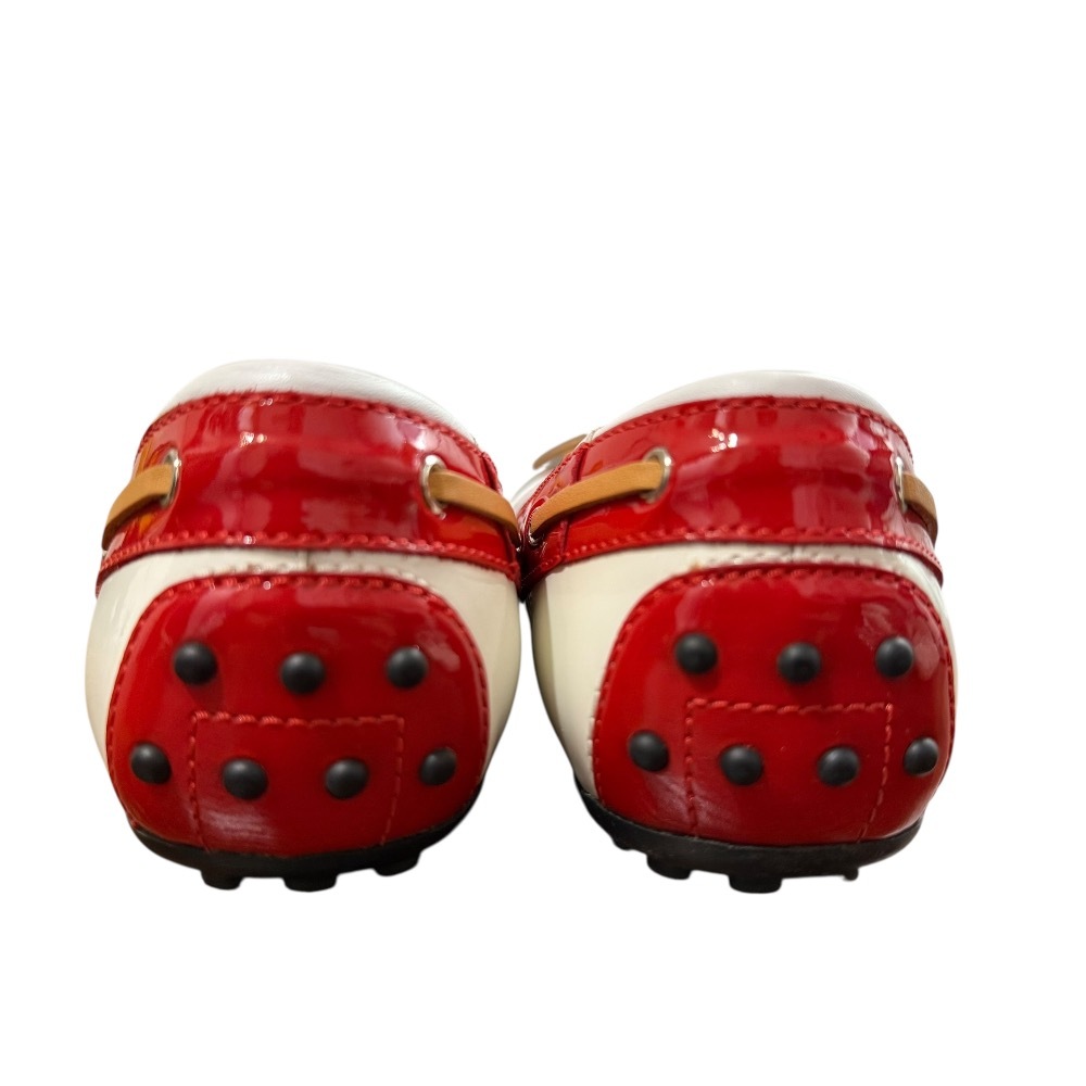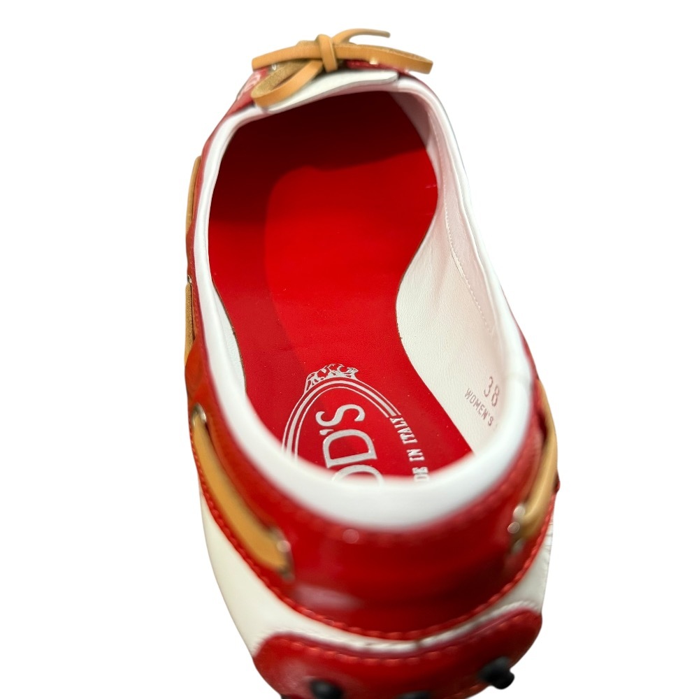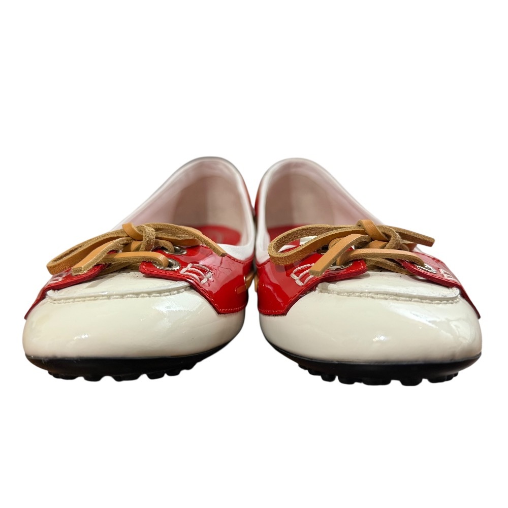 美品 TOD'S トッズ パテントレザー リボン ドライビングシューズ サイズ38 約25cm ホワイト×レッド