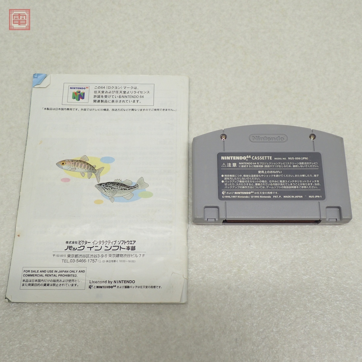 動作保証品 N64 ぬし釣り64 取説付 こちらの商品は動作保証品となりますので、一週間の動作保証をお付けします。 ■スレ、キズ、汚れ、イタミ、ヤケ、書込み、濡れ跡、破れなどがあります。 ■画像、記載以外のダメージがある可能性があります。予めご了承ください。 ■写真のものが全てです。付属物の有無や状態については写真からご判断ください。 ■チェックに使用したモニターやチェック機器等は、特に表記がない限りは付属いたしません。 ■商品到着後、当店の保証期間中は、商品及び箱や取説、付属品などを1つでも廃棄や破損をしないようにお願い致します。廃棄や破損をした場合、商品に問題があった場合でも対応や返金などの対処ができなくなります。 | |||