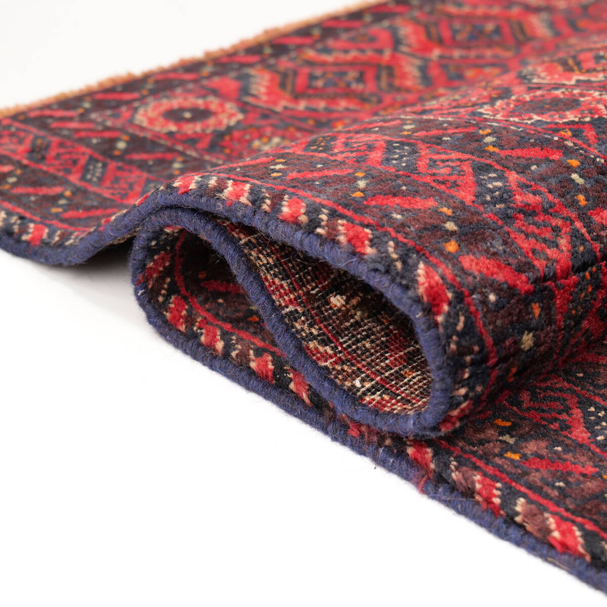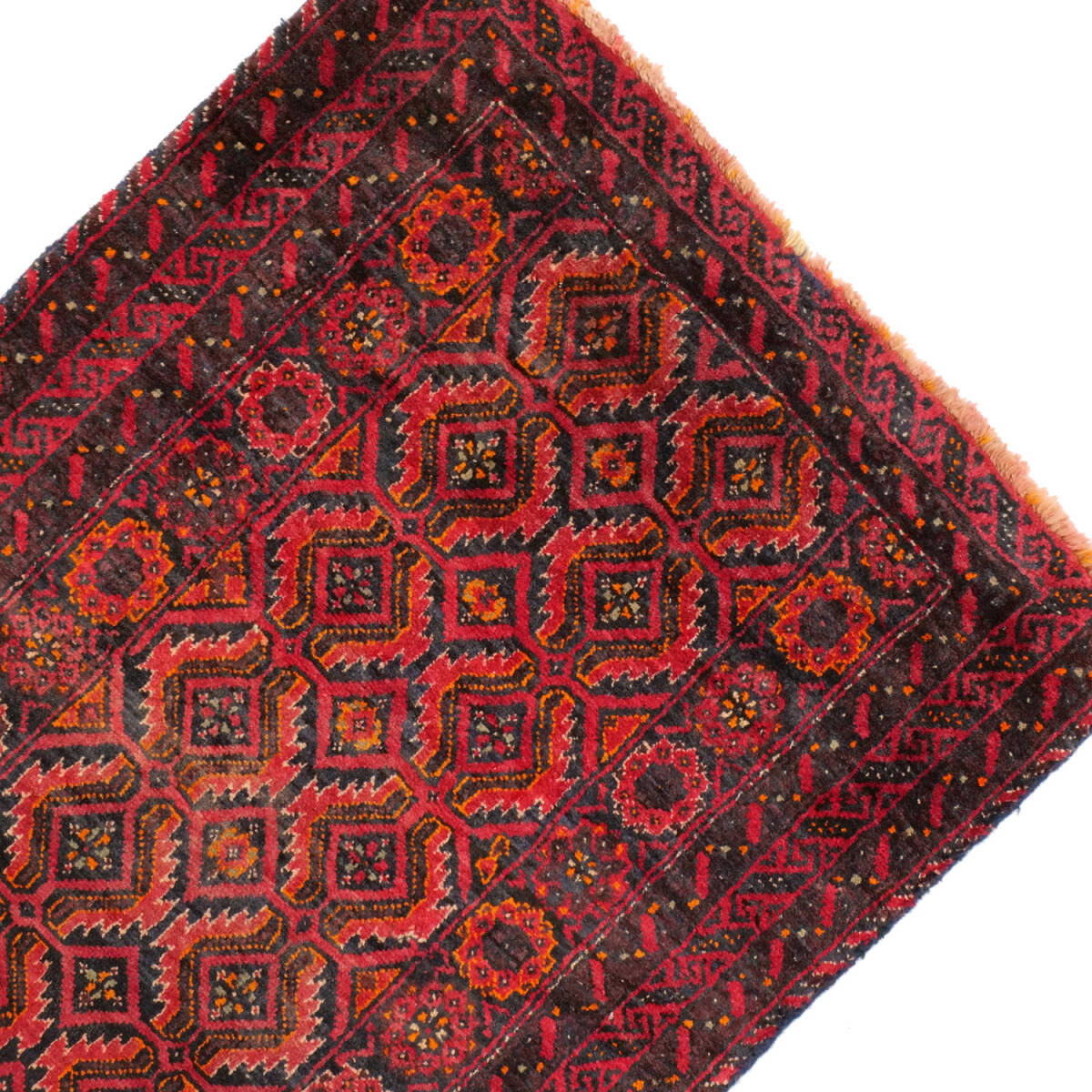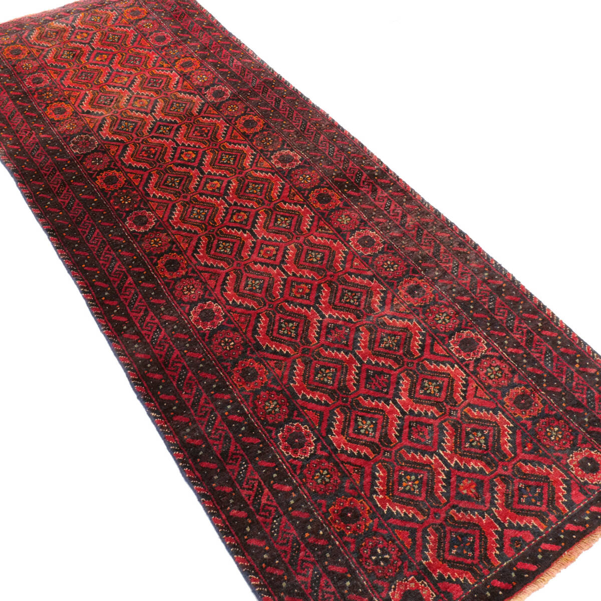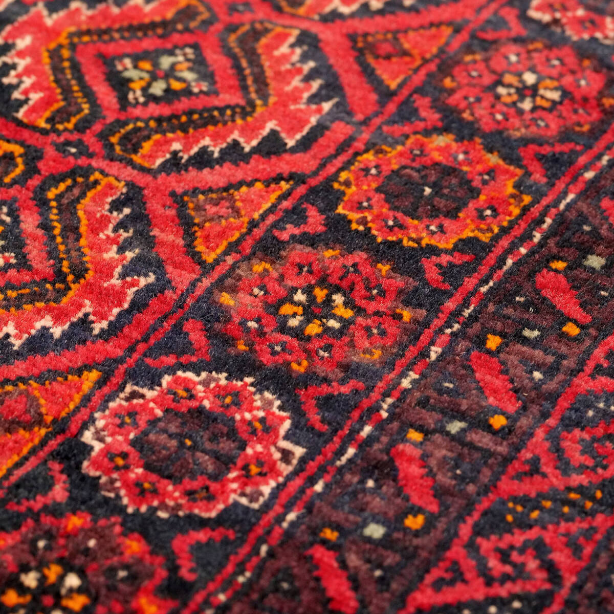 バルーチ系の伝統的な織りを受け継ぐ、堅牢で実用性の高いラグです。セミアンティークならではの趣きと美しい保存状態を併せ持ち、空間にクラシックな雰囲気を添える一枚です。