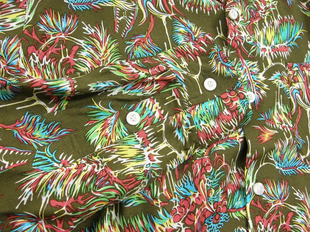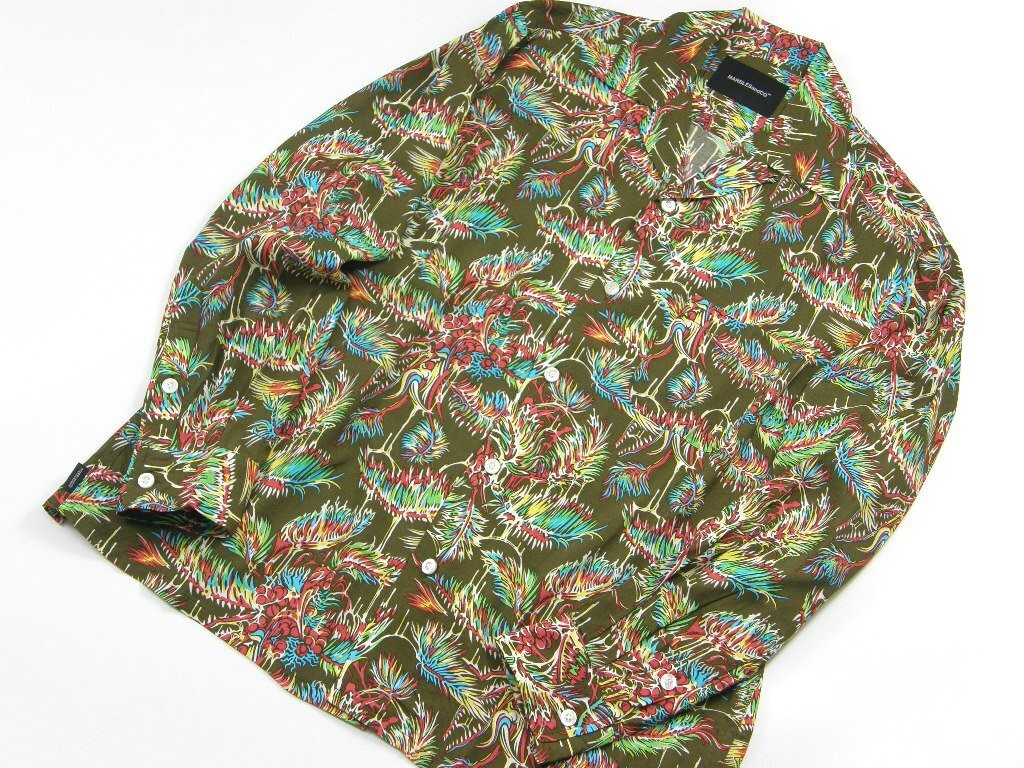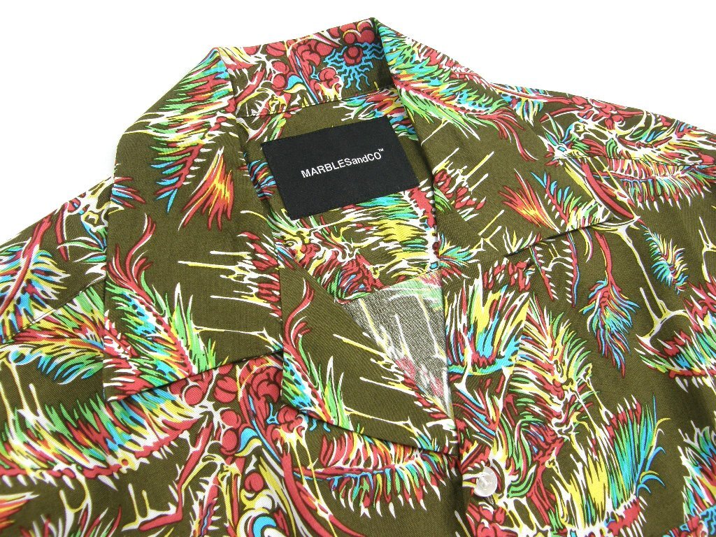 新品 Marbles 【カニバルフラワー】長袖 アロハ シャツ 日本製 定価3万6300円 オリーブ レーヨン 洗濯可 352031 マーブルズ TMT ベドウィン