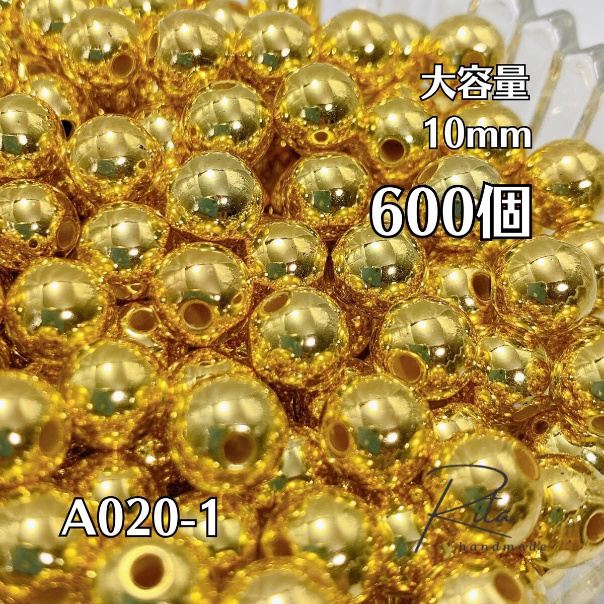 【大容量600個】ゴールド CCBプラスチックビーズ 10mm 両穴 ハンドメイド アクセサリーパーツ