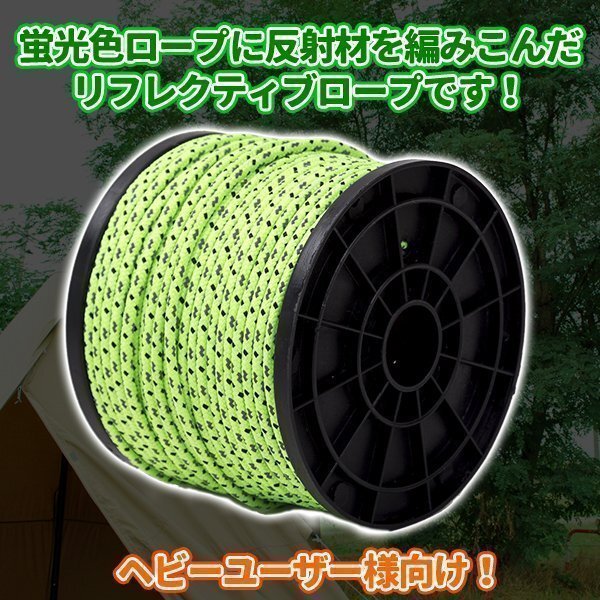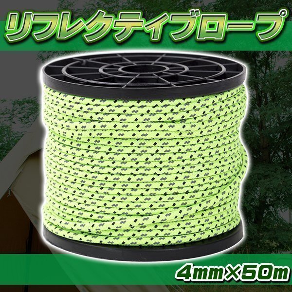 リフレクティブ ロープ ヘビーユーザー 向け 4 mm × 50 m 反射材 テントロープ ガイ 蛍光 ガイドロープ