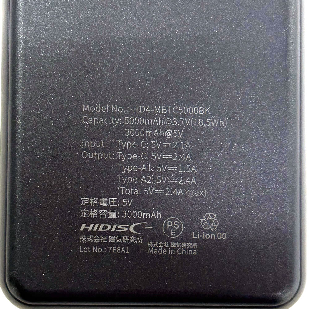 HIDISC 世界最小クラス 5000mAh モバイルバッテリー version4 HD4-MBTC5000