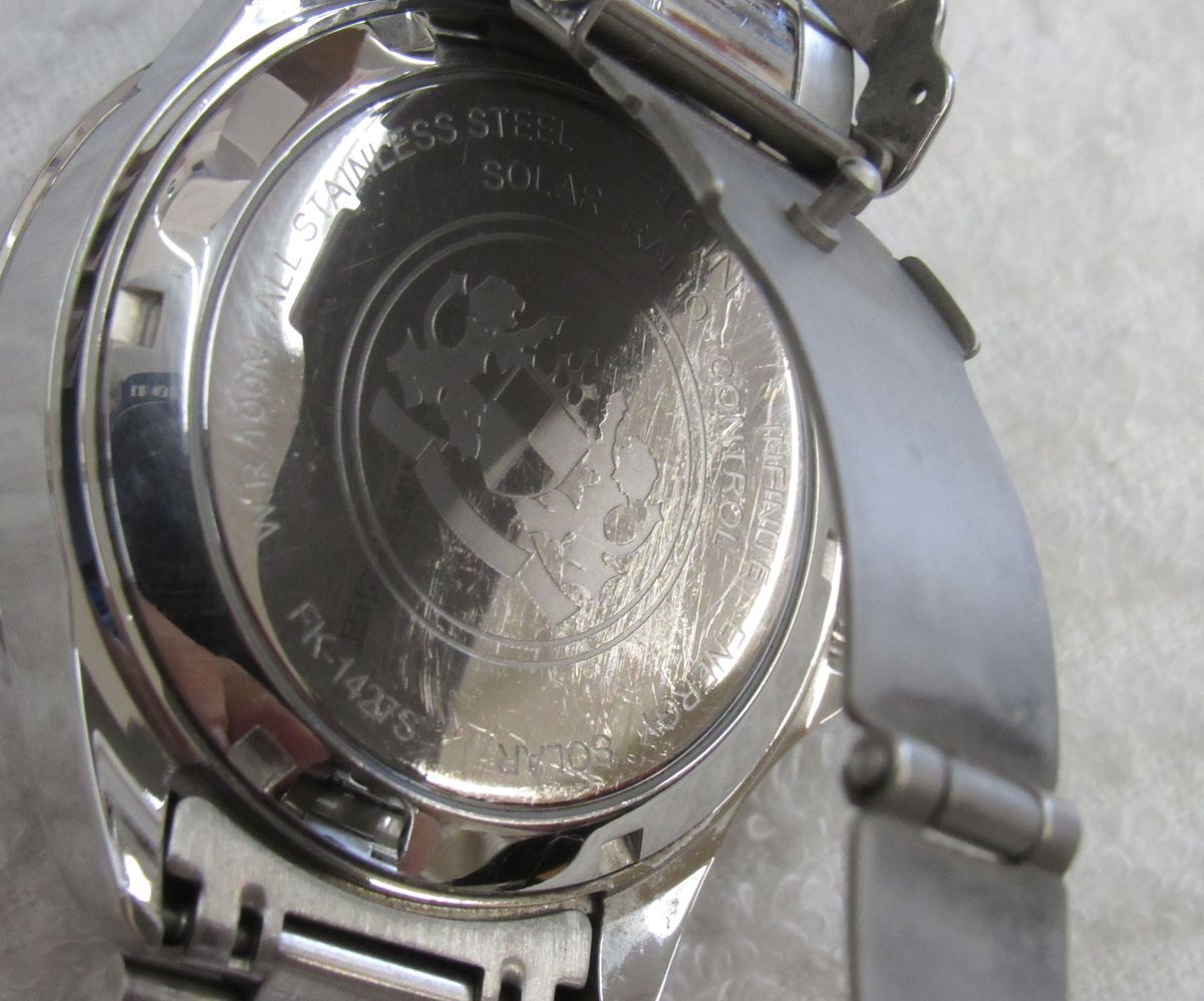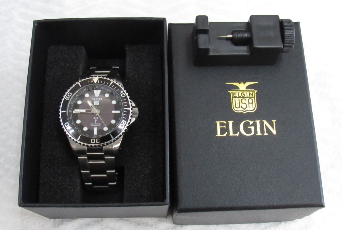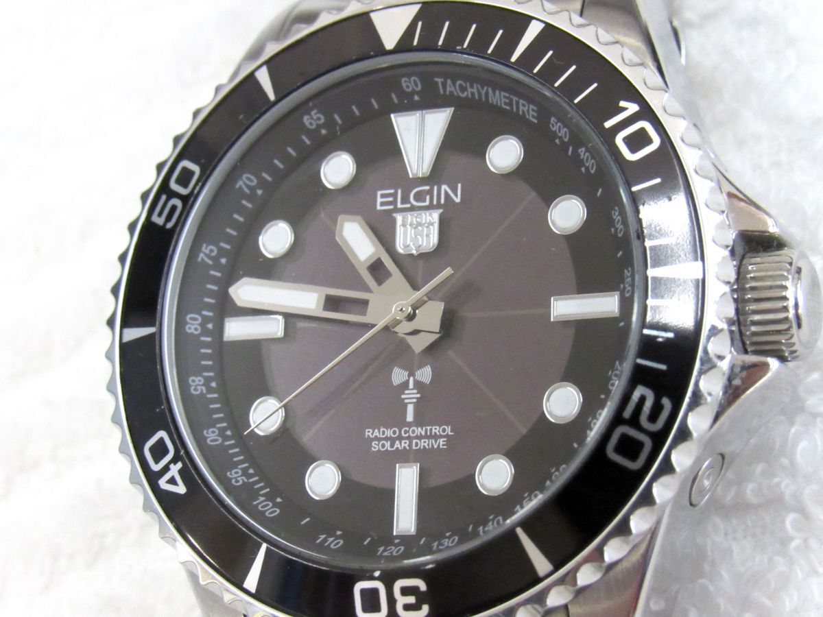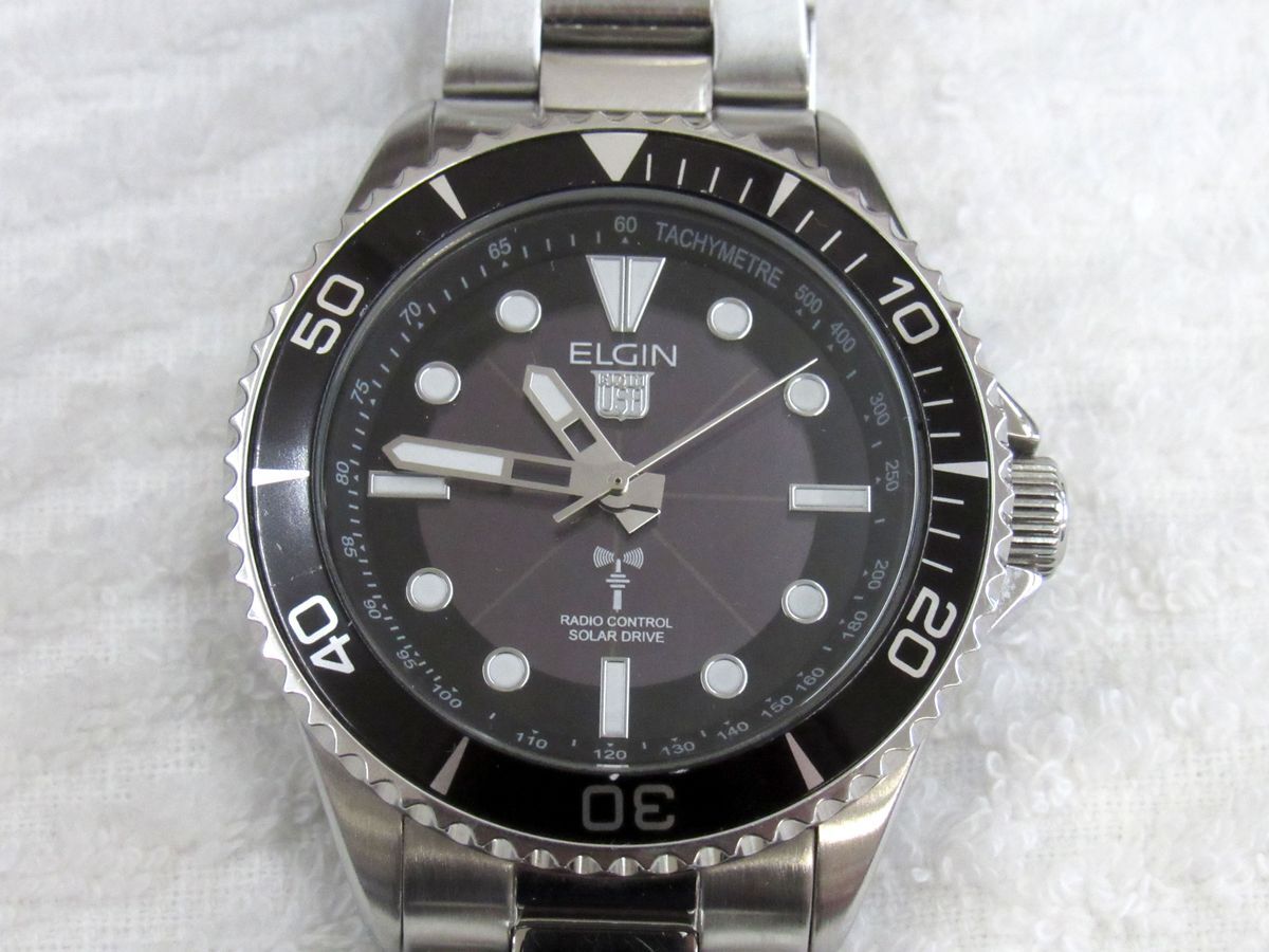■ BEi ELGIN FK-1427S 動作品 エルジン 電波ソーラー バンド20cm 調整工具付 ガラスキズなし 裏スリ傷あり 箱あり
