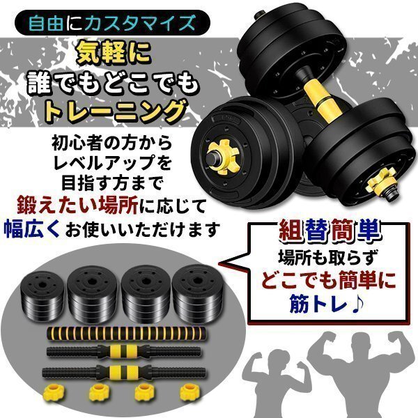 ダンベル 可変式 40kg 可変 セット バーベル プレート セット 10kg 4kg 5kg 3kg 15kg 2WAY