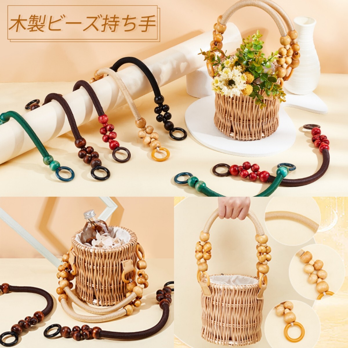 ウッドビーズ付き木製持ち手。カバンやお洋服のデザインに合わせて選べる豊富なバリエーション。