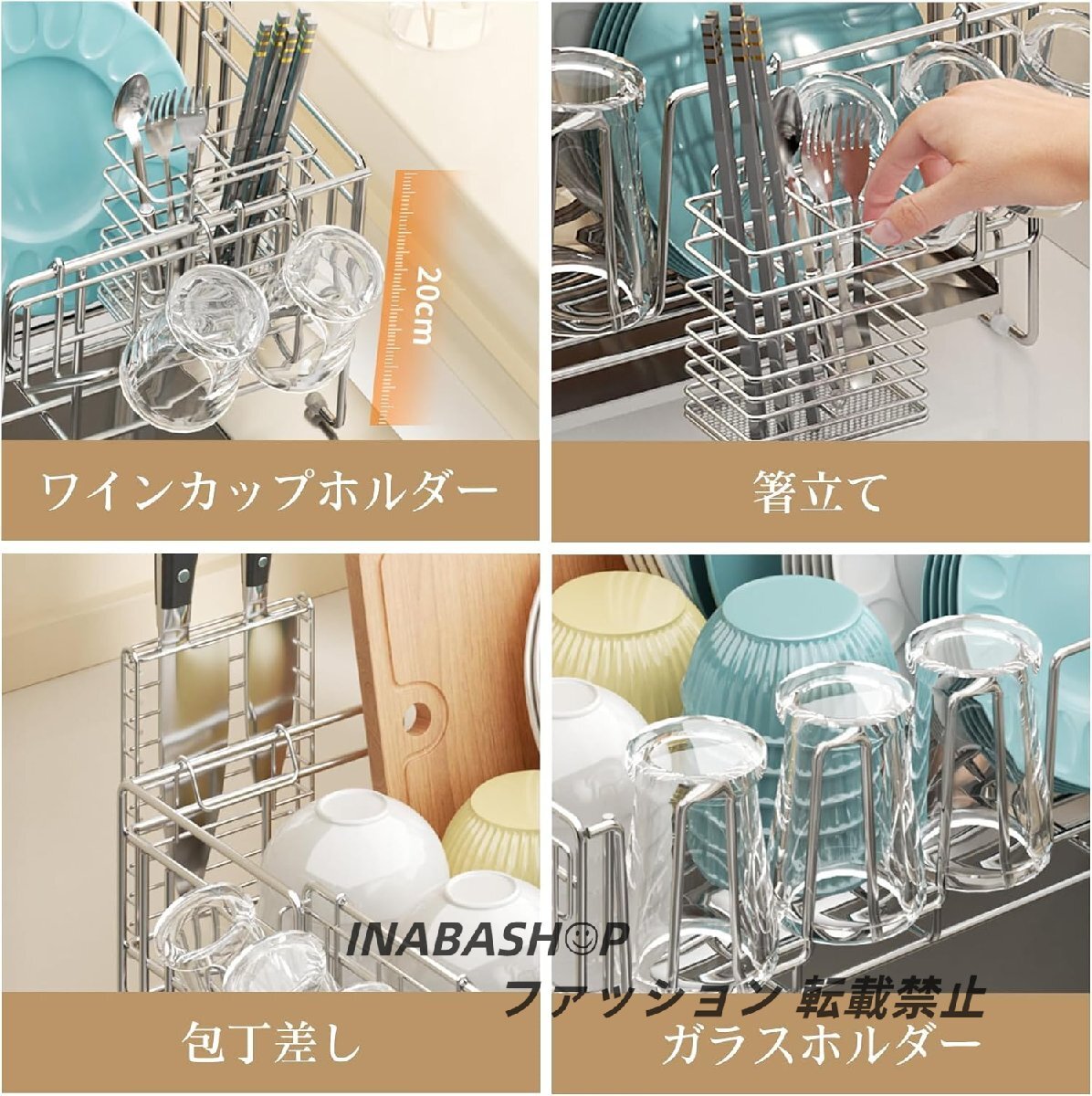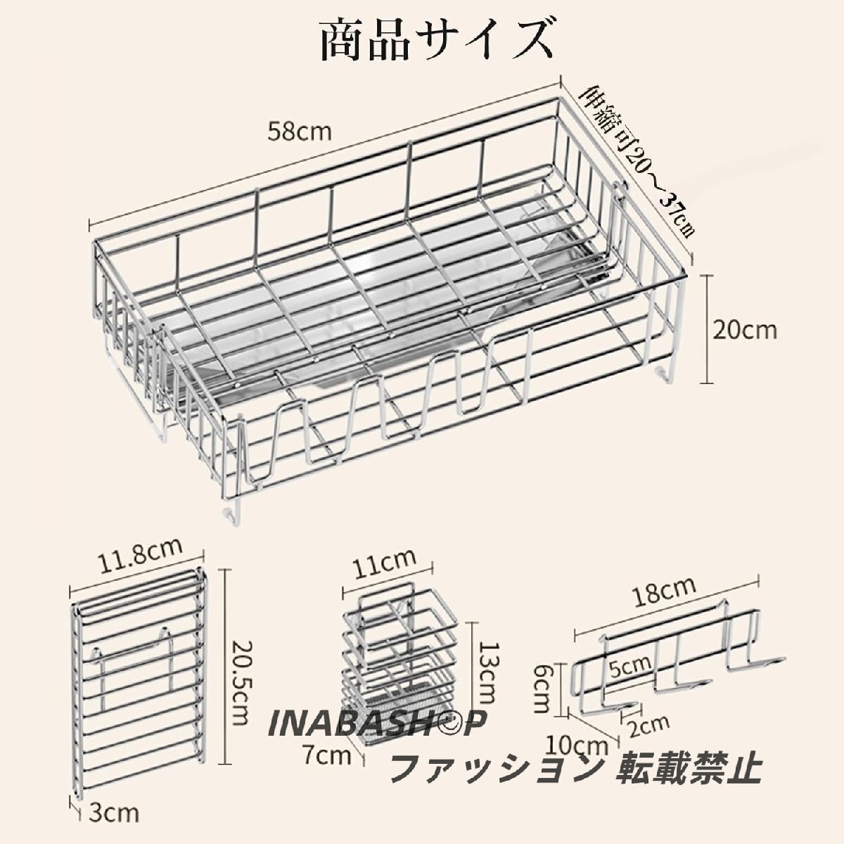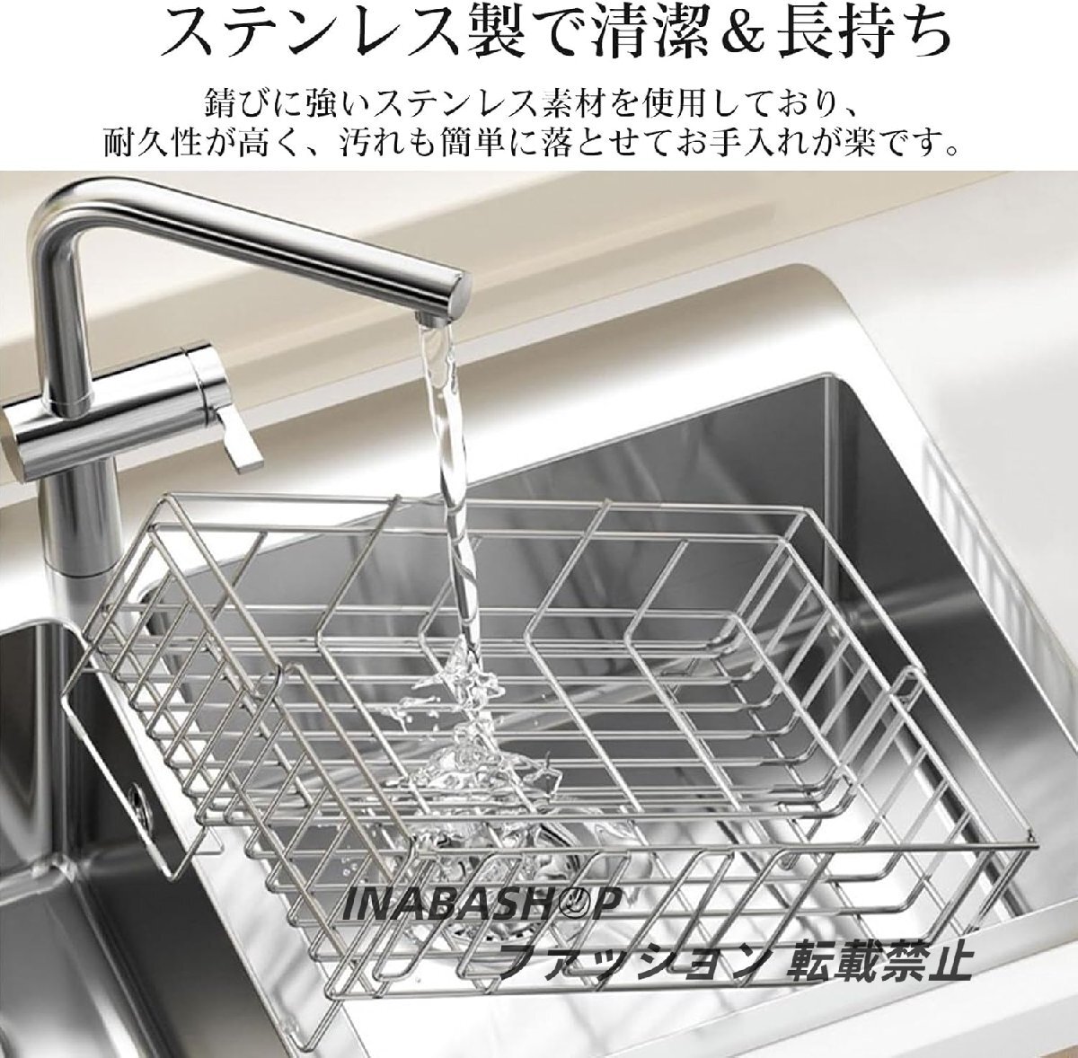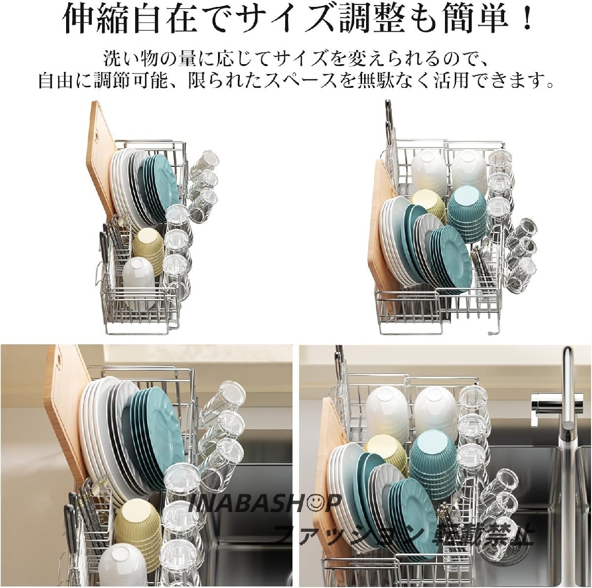 水切りラック キッチンラックシンク上 水切りかご : ステンレス水切りカゴ、組み立て簡単、滑り止め設置 横置き、渡せる、大容量調整可能