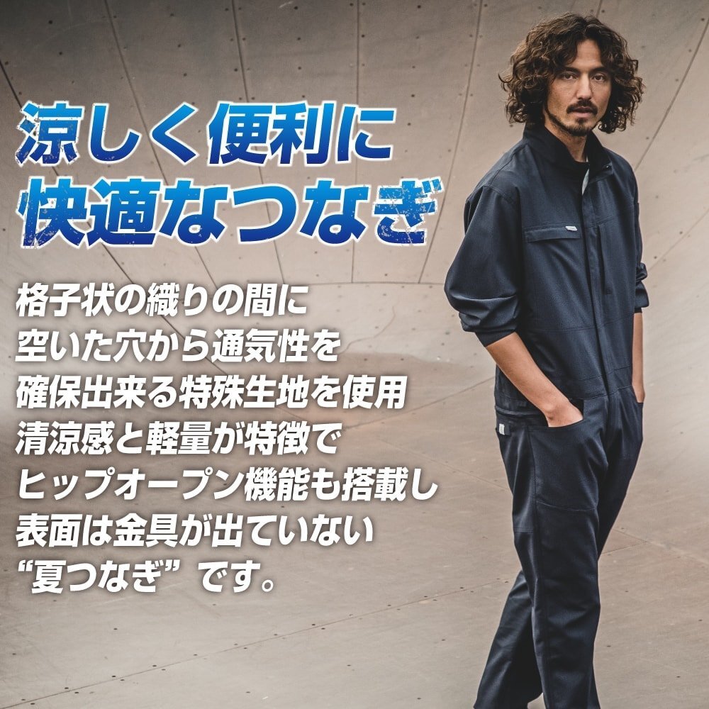トイレも楽々ヒップオープン機能付き長袖ツナギ