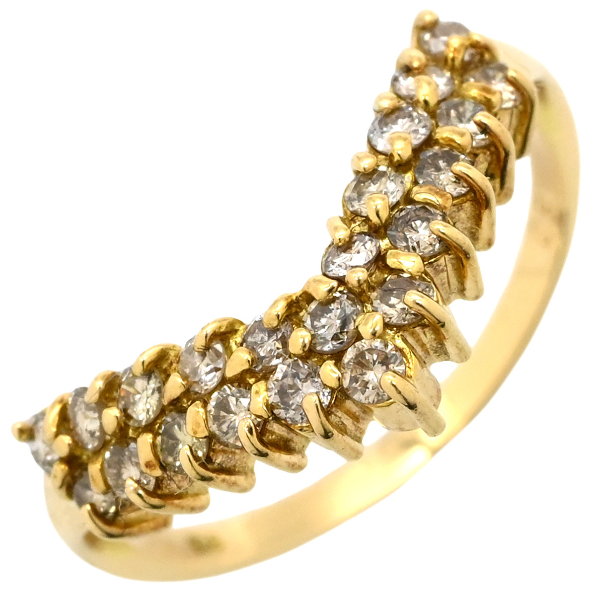 リング 指輪 ダイヤリング K18YG ゴールド V字 Vライン 中古