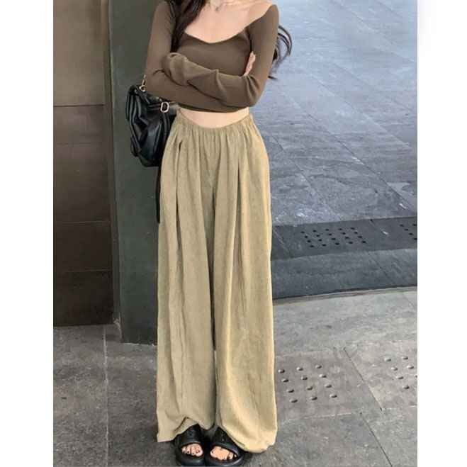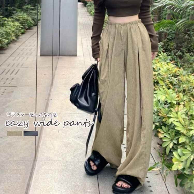 ・脚のラインを拾わず体形カバーしてくれてウエストゴムで楽ちんな着心地。幅広いシーンで着られて着回し力の高い1着です。