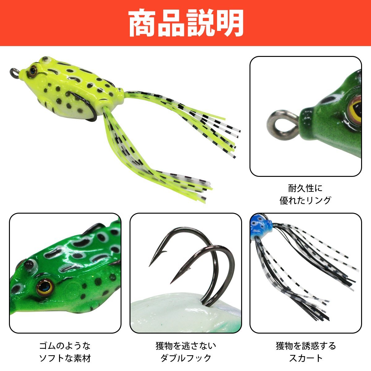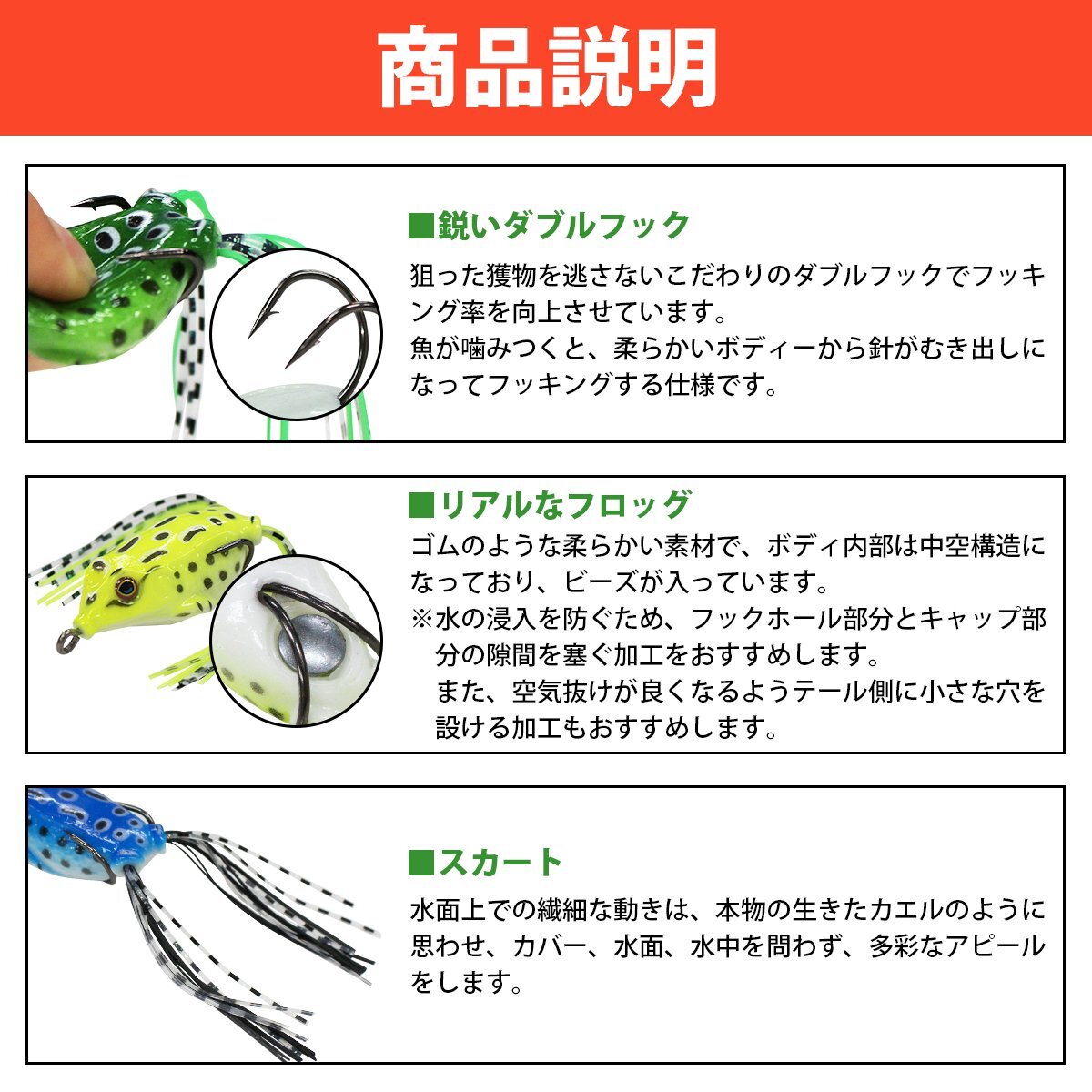 商 品 説 明バス釣りなどに最適なカエルルアー5点セットです。