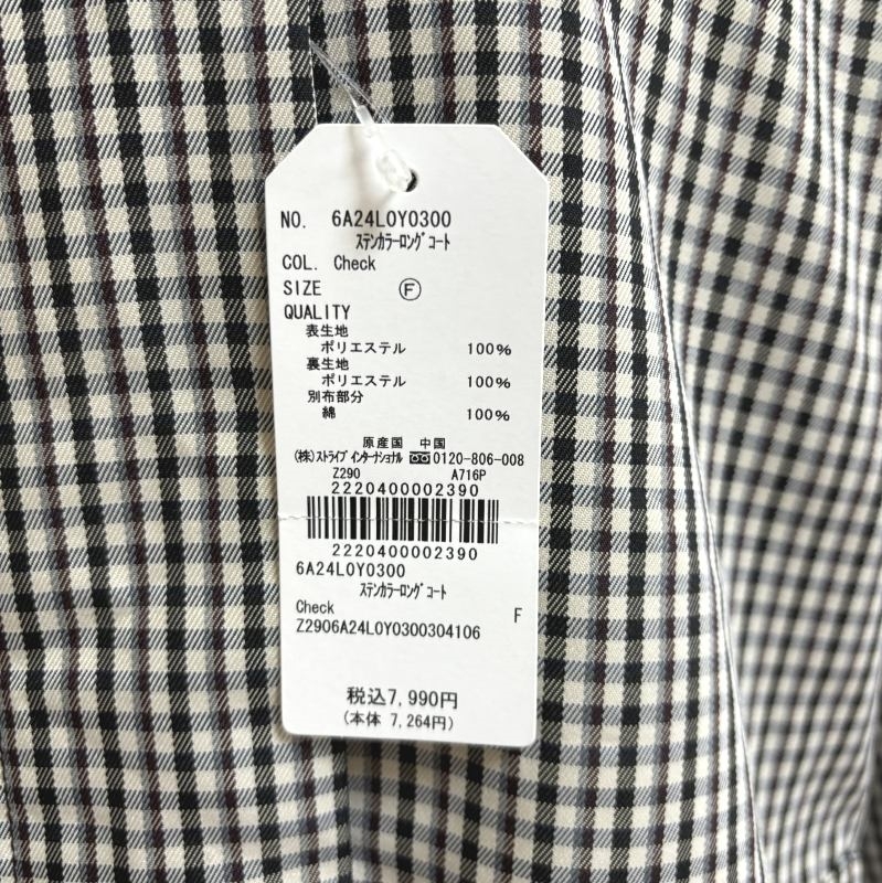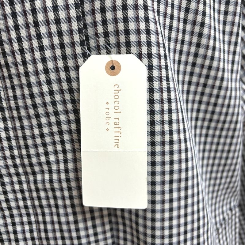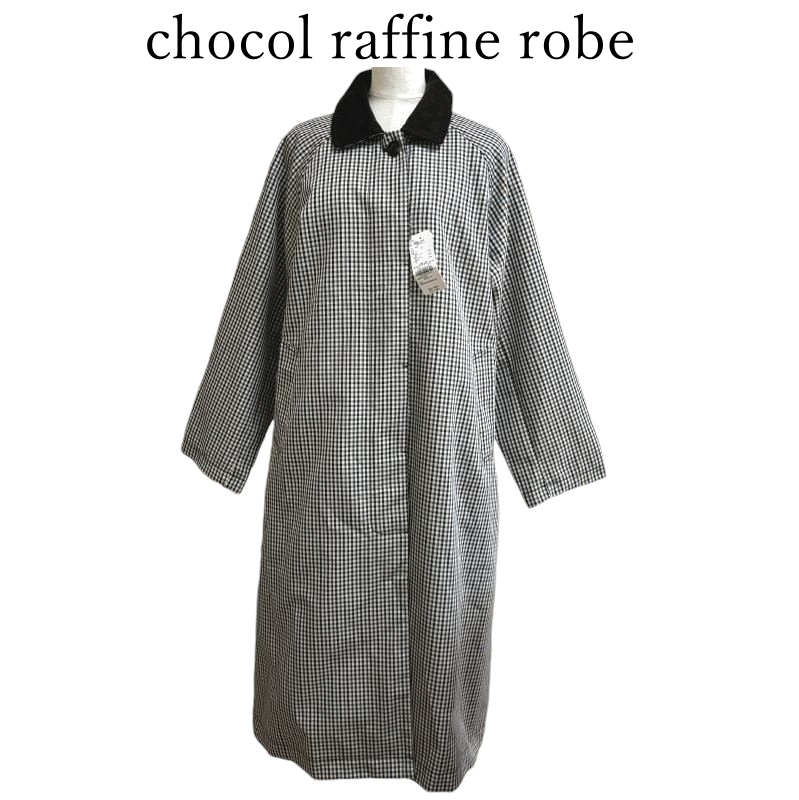 タグ付き新品。定価7990円。chocol raffine robe(ショコラフィーネローブ)のステンカラースプリングコートトラッドなチェックが印象的なアイテムです。サイズはフリー(F)で、幅広い体型の方にお召しいただけるゆったりとしたシルエットが特徴です。シンプルなステンカラーデザインで、カジュアルにもきれいめにもコーディネートしやすく、春秋の軽やかな装いにぴったりの一着です。季節の変わり目にサッと羽織るのに最適です。ビッグシルエットのスプリングコート。ポケットあり。裏地あり。◆サイズ◆F バスト120 ゆき丈80 袖幅22 ウエスト140 着丈110 ◆素材◆画像参照