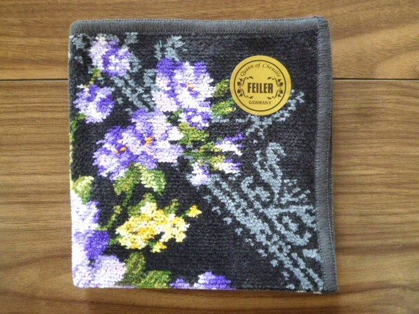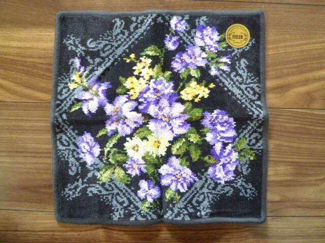 新品*未使用*大きめサイズ*FEILER*フェイラー*リファインドビューティー*花柄*チャコールグレー*ウォッシュタオル*ハンカチ*シュニール織