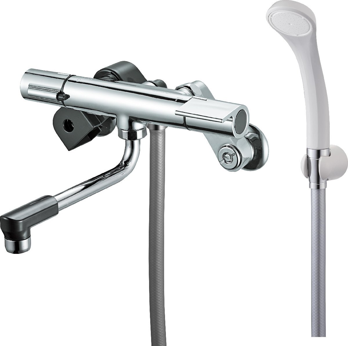ブランド:SANEI(サンエイ)カラー:メッキボディーサイズ:パイプの長さ:170mm取付け後、水漏れの有無をお確かめください。【適温キープ】サーモカートリッジの働きで湯水の混合量を自動で調整し、常に一定の温度を保つことが出来ます。