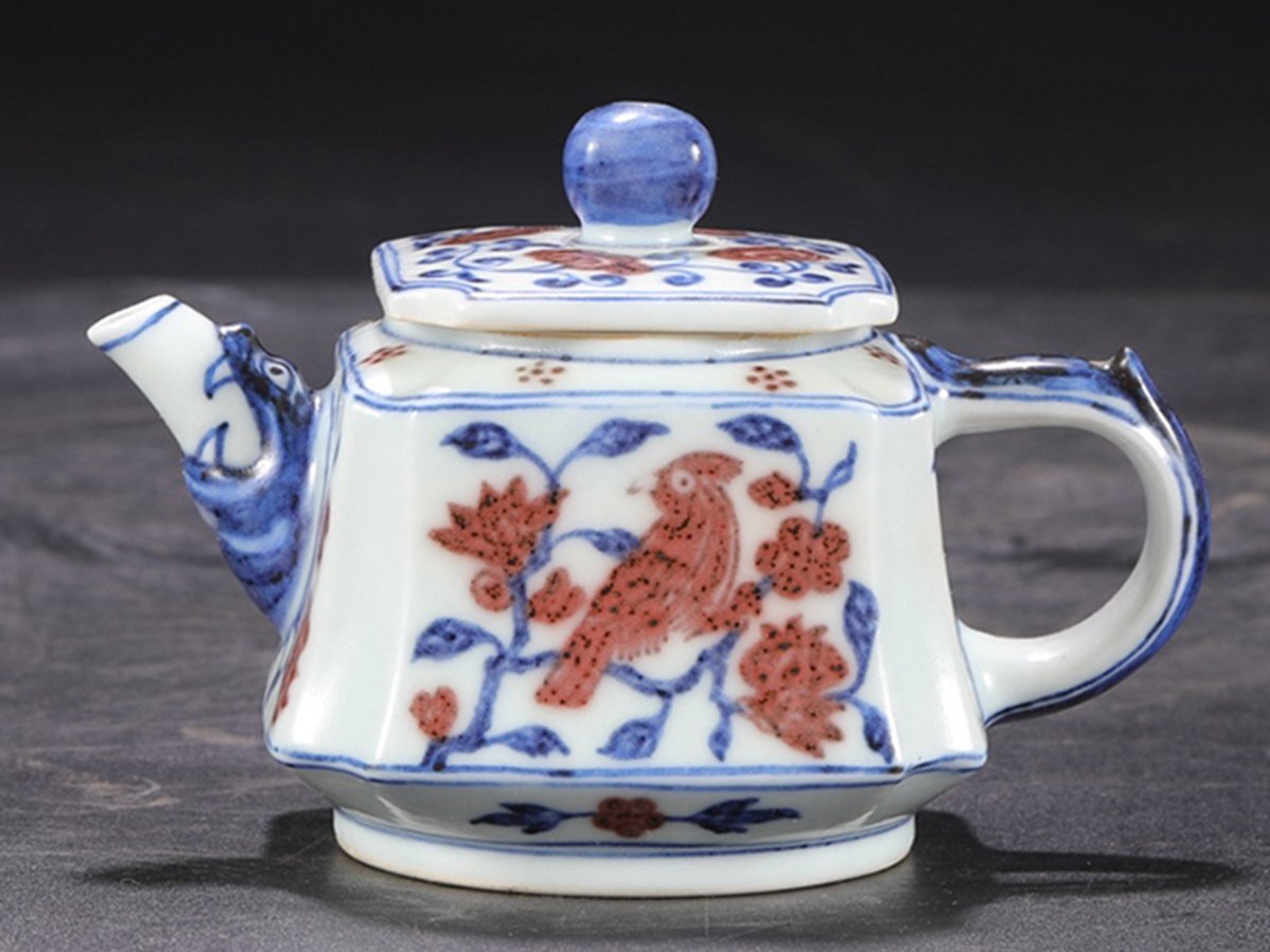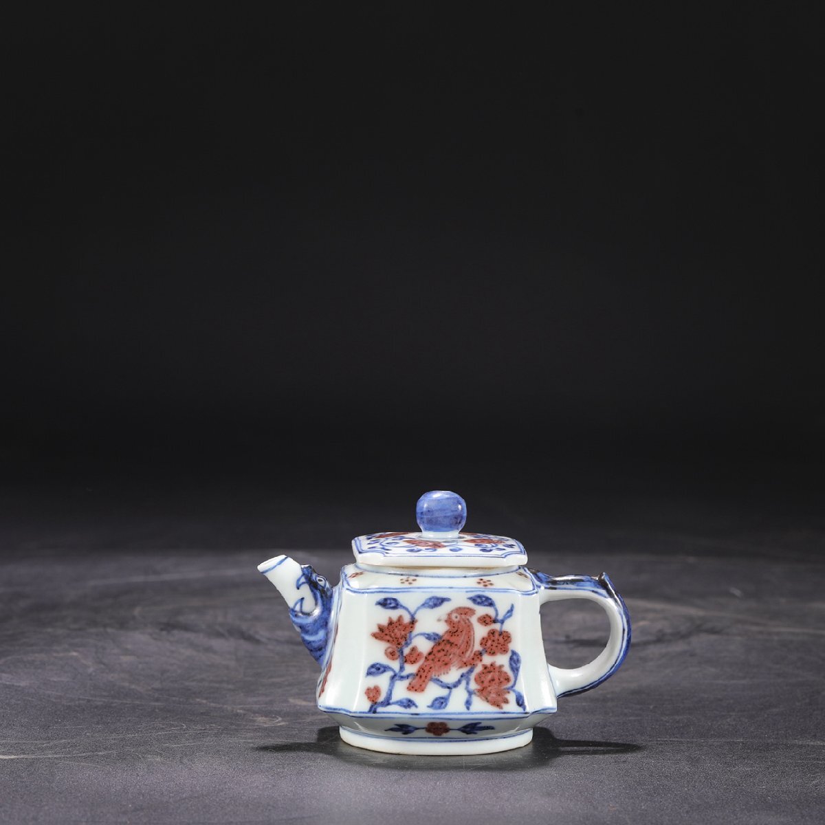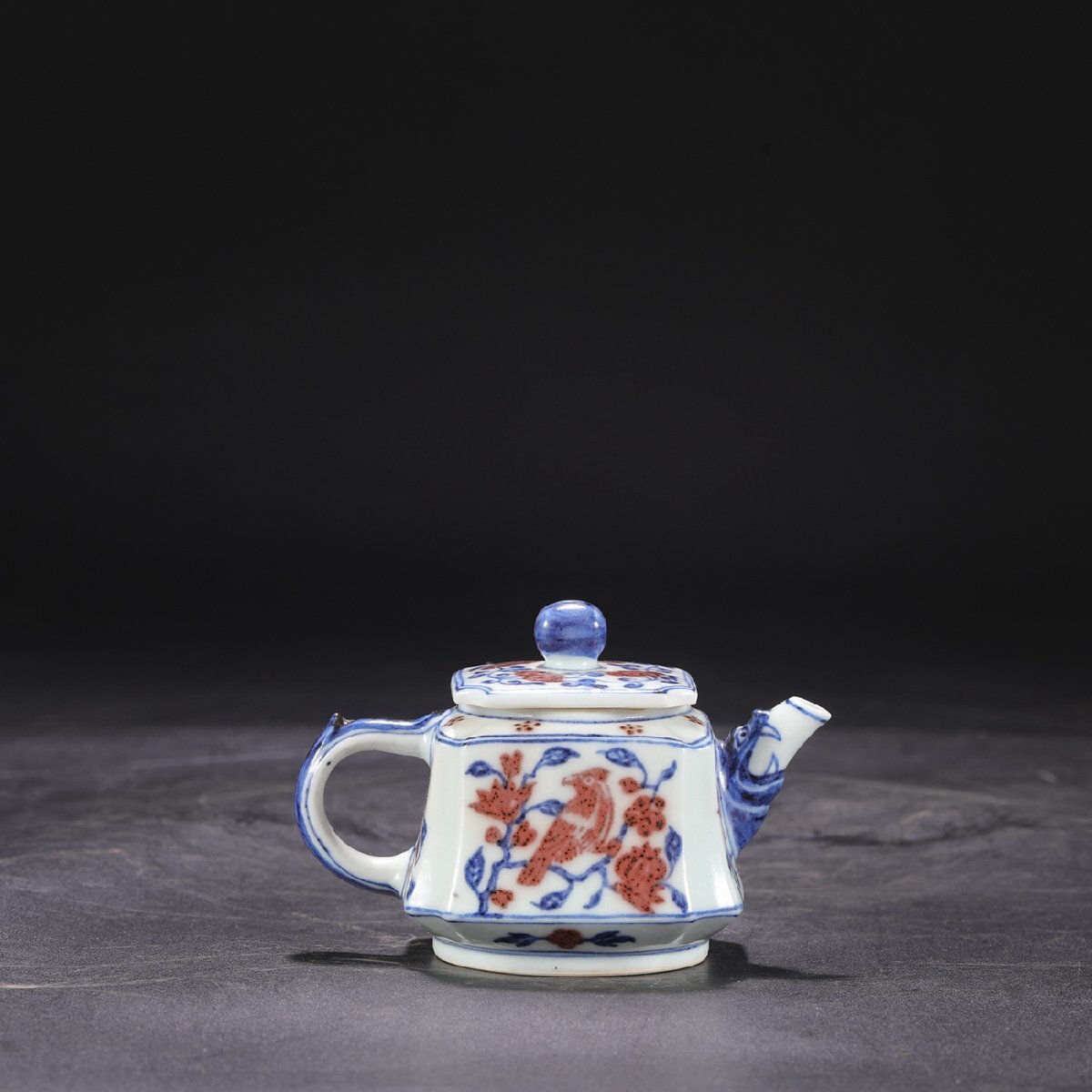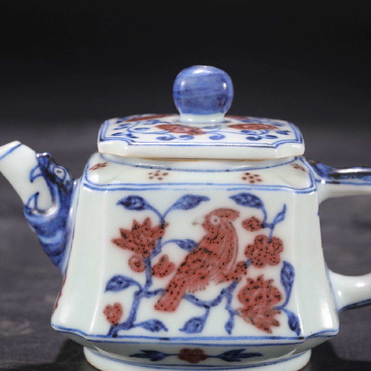 【安】明時代 大明宣徳年製 青花釉裡紅花鳥紋執壺 共箱 唐瓷 染付 古陶瓷 中国古美術 古董品 195 サイズ(約寸) |