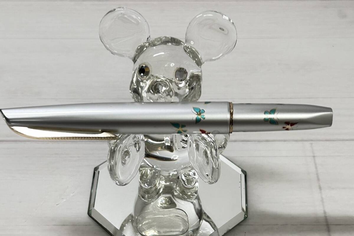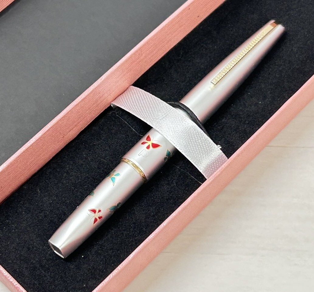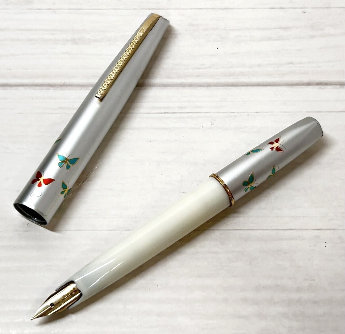プラチナ製のショートサイズ万年筆、希少な蝶柄ホワイトバレル仕様です。 エレガントな印象を与える繊細なデザインで、現在では流通がほとんどないコレクター向けの一本です。 【ブランド】PLATINUM(プラチナ) 【モデル】ショートサイズ 蝶柄モデル 【ペン先】14金(F:細字) 【軸色】ホワイト(蝶モチーフ) 【サイズ】収納時 約117mm 【吸入方式】カートリッジ/コンバーター両用式 【付属品】汎用ギフトボックス 【商品状態】 ・経年による小傷やスレはありますが、全体的に良好なコンディション ・筆記確認済み:インクフロー良好、スムーズな書き味 ・簡易インククリーニング済み 蝶柄と白軸という組み合わせは珍しく、ショートサイズという点も含めて高いコレクター価値があります。 中古品につき、画像にて状態をご確認の上ご検討ください。 ◇当店について◇ 当店は国内・海外フリマで中古高級ブランド品や万年筆を中心に販売しております。 □公安委員会 古物商許可番号:第62202R063996号(大阪府) □すべて正規ショップまたは信頼できるルートから仕入れております。 □専門スタッフによる簡単なクリーニング済み ******************** ご不明点や追加写真のご要望はお気軽にお問い合わせください。