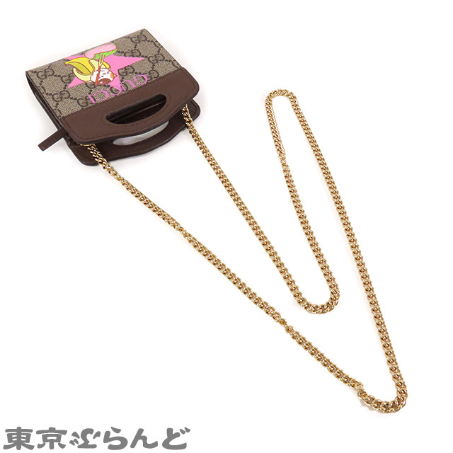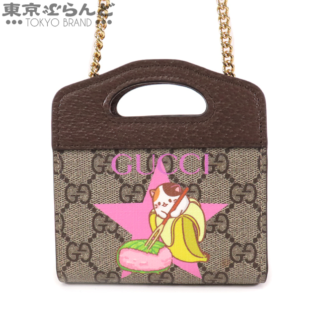 101798756 グッチ スターばなにゃプリント トップハンドル ミニバッグ 701066 ベージュ GGキャンバス チェーンウォレット 財布 レディース