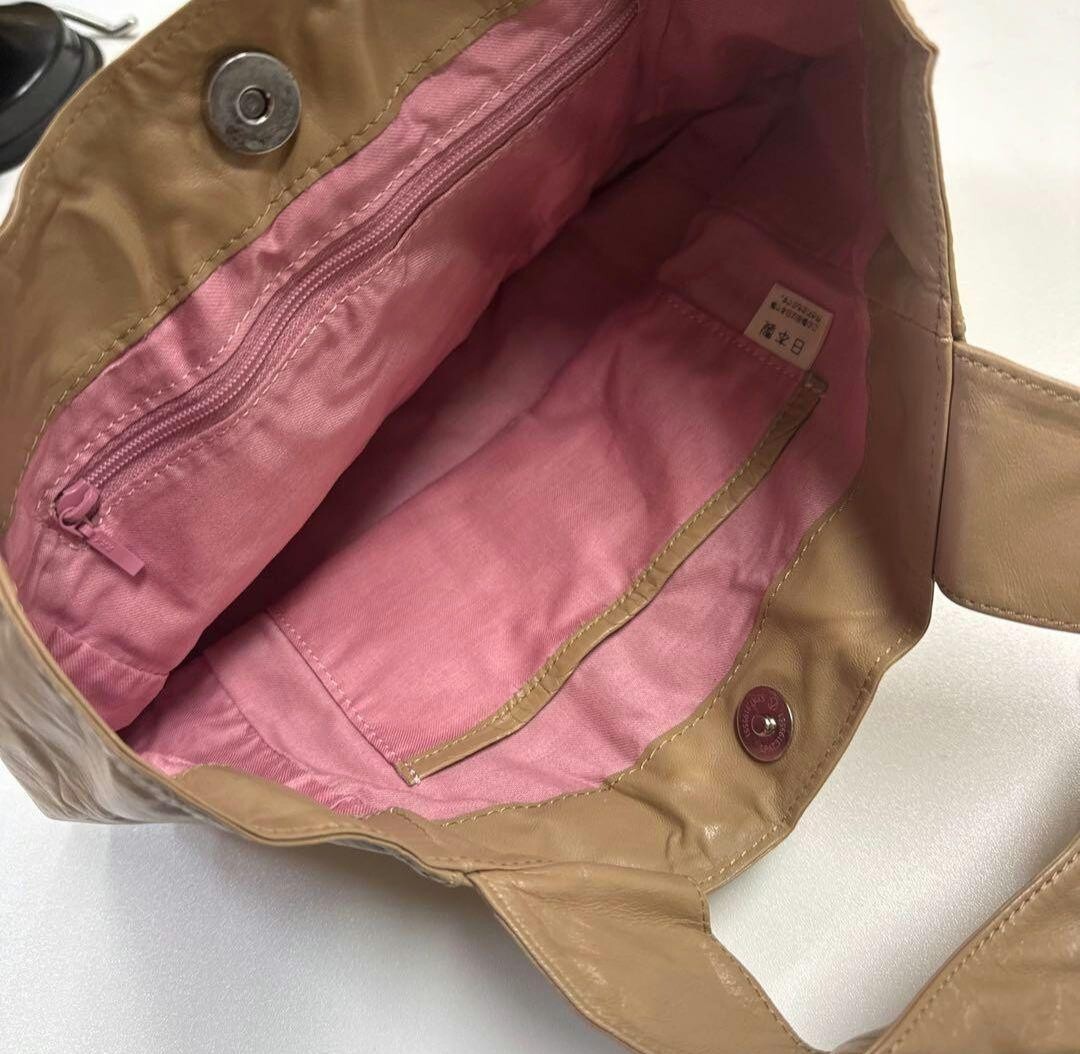 紙のような軽さに仕立てたソフトな牛革。迷わずコーディネイトできるシンプルなデザインも魅力。
