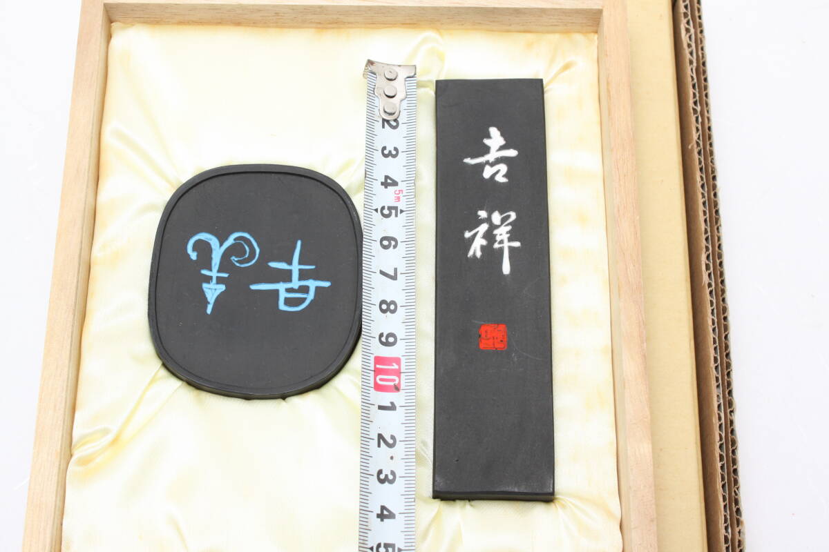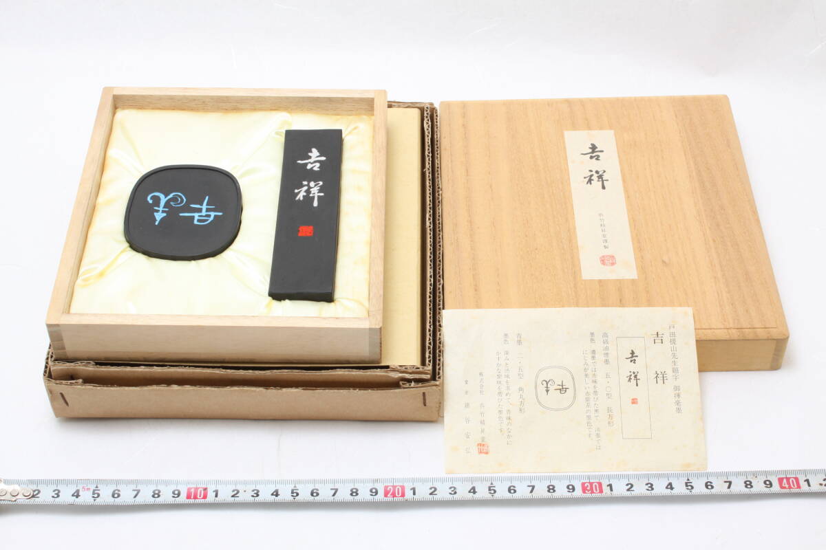 3698 未使用 書道 吉祥 墨 呉竹精昇堂 高級油煙墨 黒墨 青墨 戸田提山 先生題字 栞 共箱付