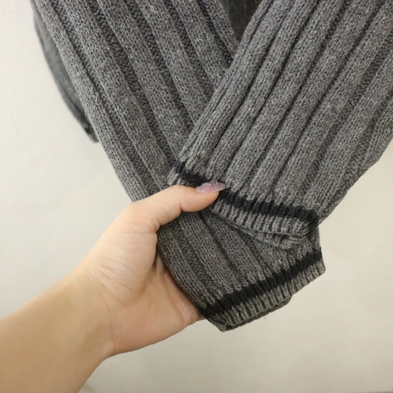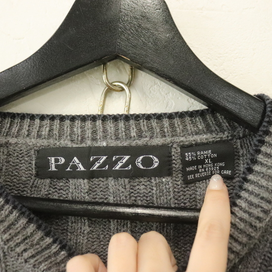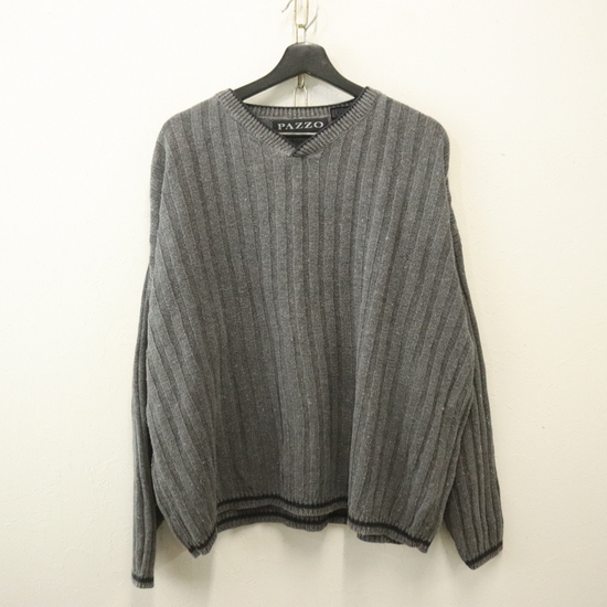 商品名 C778 90sビンテージ PAZZO コットンニットセーター■1990年代製 表記XLサイズ グレー Vネック 無地 2トーンカラー アメカジ 古着 激安 80s
