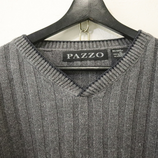 C778 90sビンテージ PAZZO コットンニットセーター■1990年代製 表記XLサイズ グレー Vネック 無地 2トーンカラー アメカジ 古着 激安 80s
