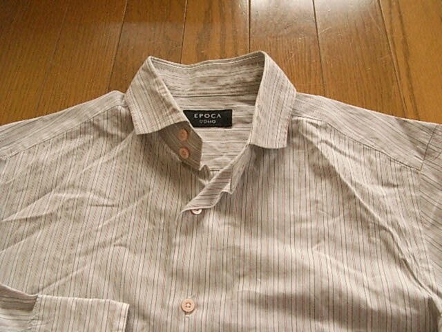 EPOCA UOMO エポカの長袖ドレスシャツです。サイズはITL44(M程度)になります。平置き実測サイズは、肩幅約44cm、袖丈約60cm、着丈約71cm、身幅約52cmです。素人採寸のため多少の誤差はご了承ください。全体色はホワイト&レッド&ブルー系のストライプのデザインになります。クリーニング済みです。素材感もとても良く、高級ラインのエポカらしいとてもかっこいい素敵なデザインです。特に目立つダメージはありませんが、あくまでも中古でありますことを御了承願います。ノークレーム・ノーリターンでお願いします。送料込み(クロネコ便等発送)になります。