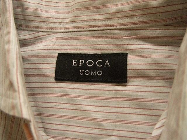 EPOCA UOMO エポカ かっこいい長袖ドレスシャツ ホワイト&レッド&ブルー系 ストライプ サイズITL44(M程度)