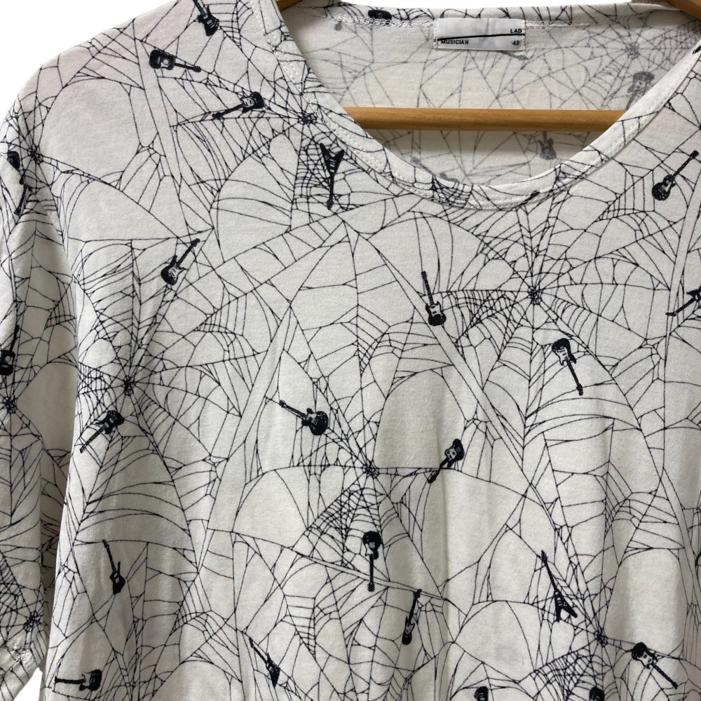 美品 LAD MUSICIAN ラッドミュージシャン スパイダー ギタープリント 半袖 Tシャツ 42 ホワイト