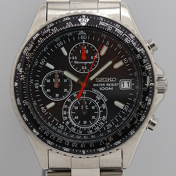 デッドストック級 稼働 未使用品 セイコー クロノグラフ V657-8120 黒文字盤 QZ メンズ腕時計 2000000 NSK KTU ABC 16051
