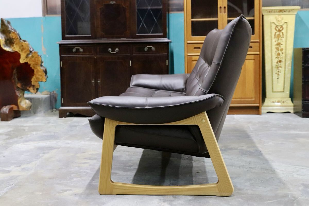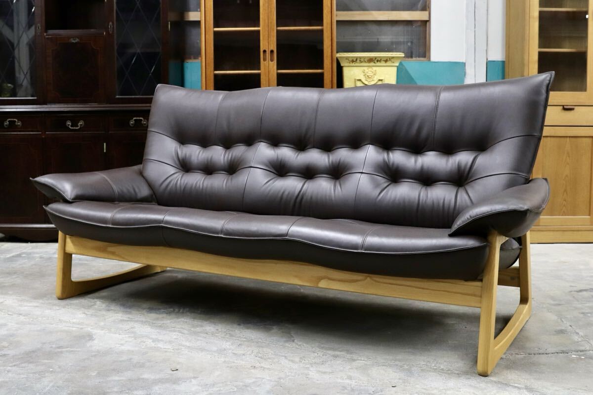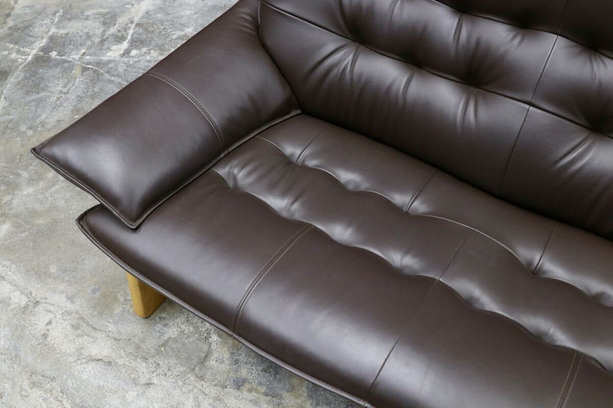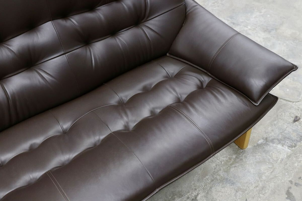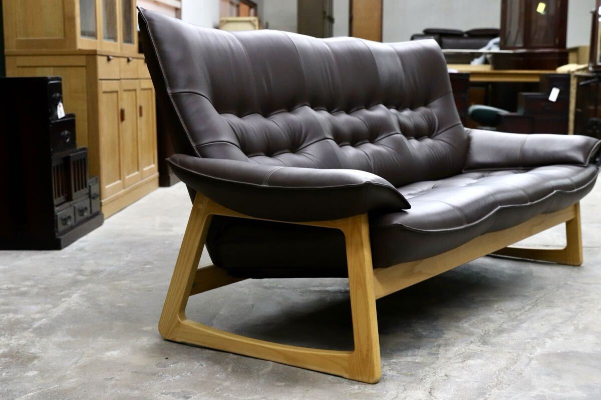 大分県日田市の老舗家具メーカー「新象」による3人掛けソファ。上質な本革を使用した、包み込むような座り心地の逸品です。シンプルでスタイリッシュなデザインは北欧家具とも良い相性です。