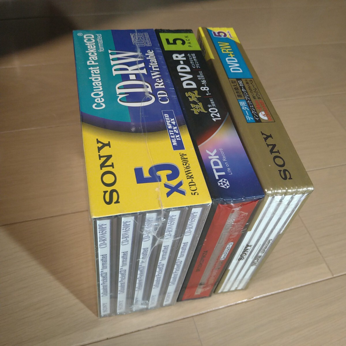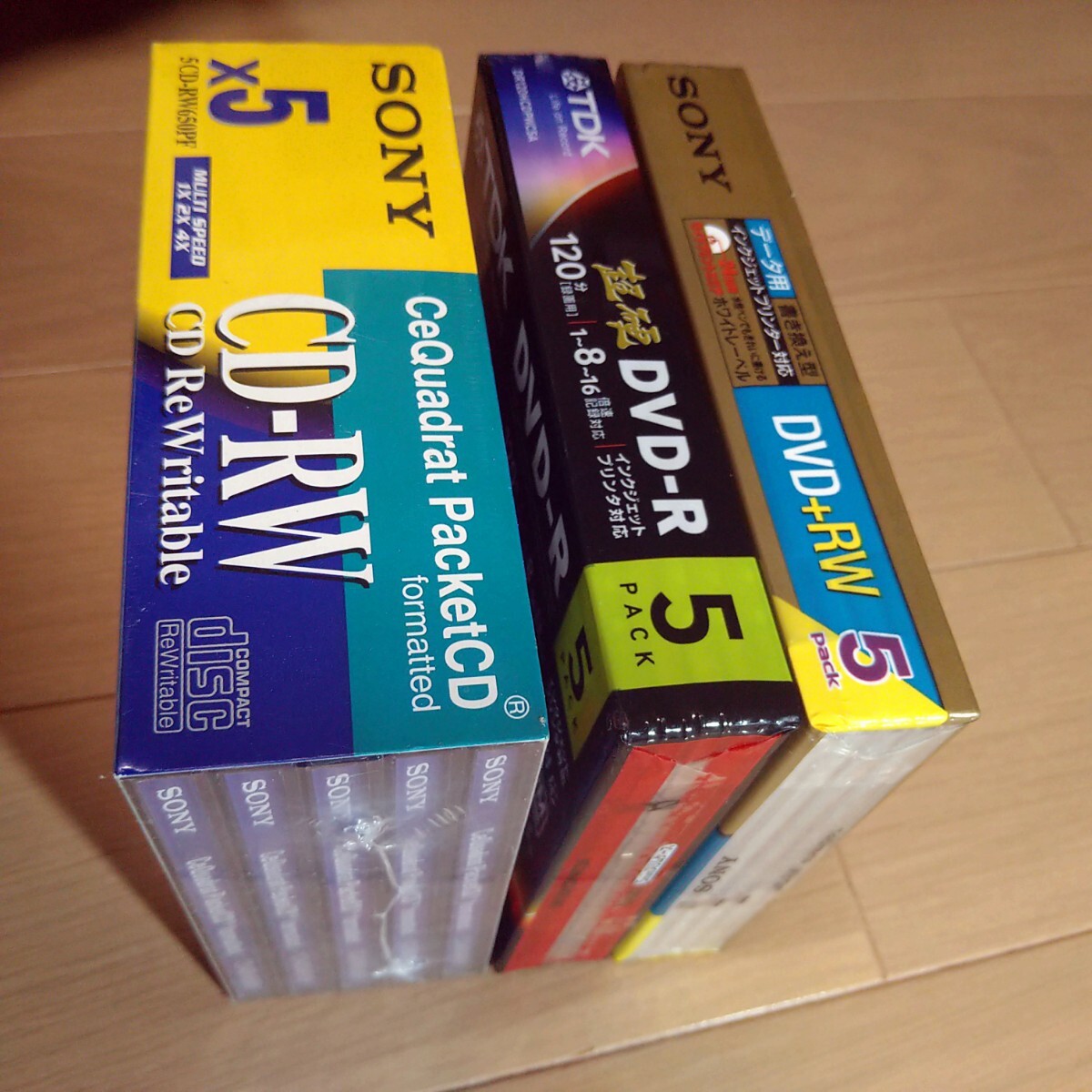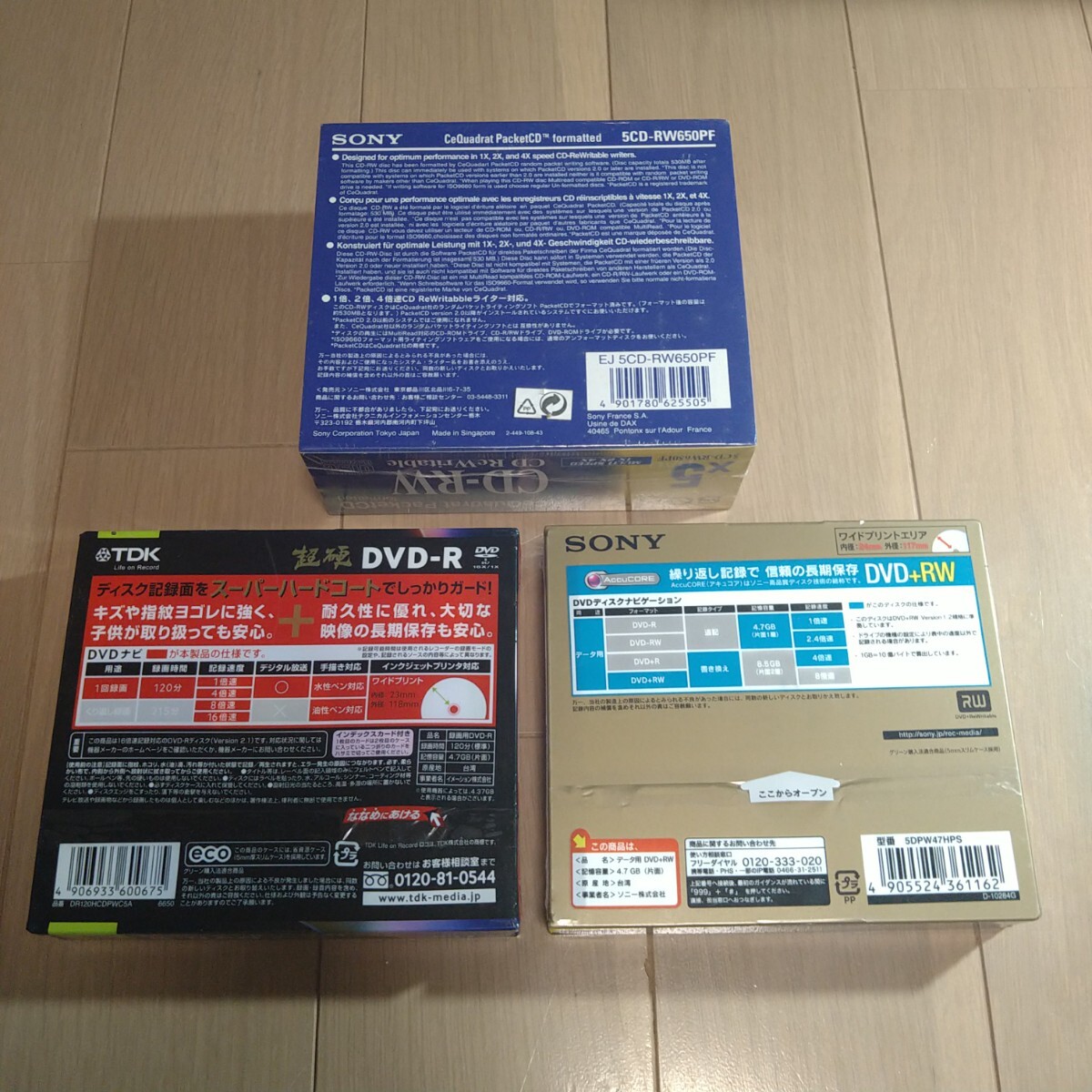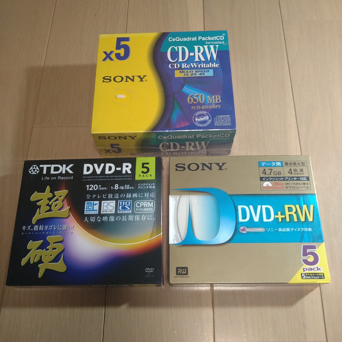 <SONY DVD+RW 4.7GB 4倍速 5枚パック><TDK DVD-R 超硬 5枚パック><SONY CD-RW 650MB 5枚パック>送料込み