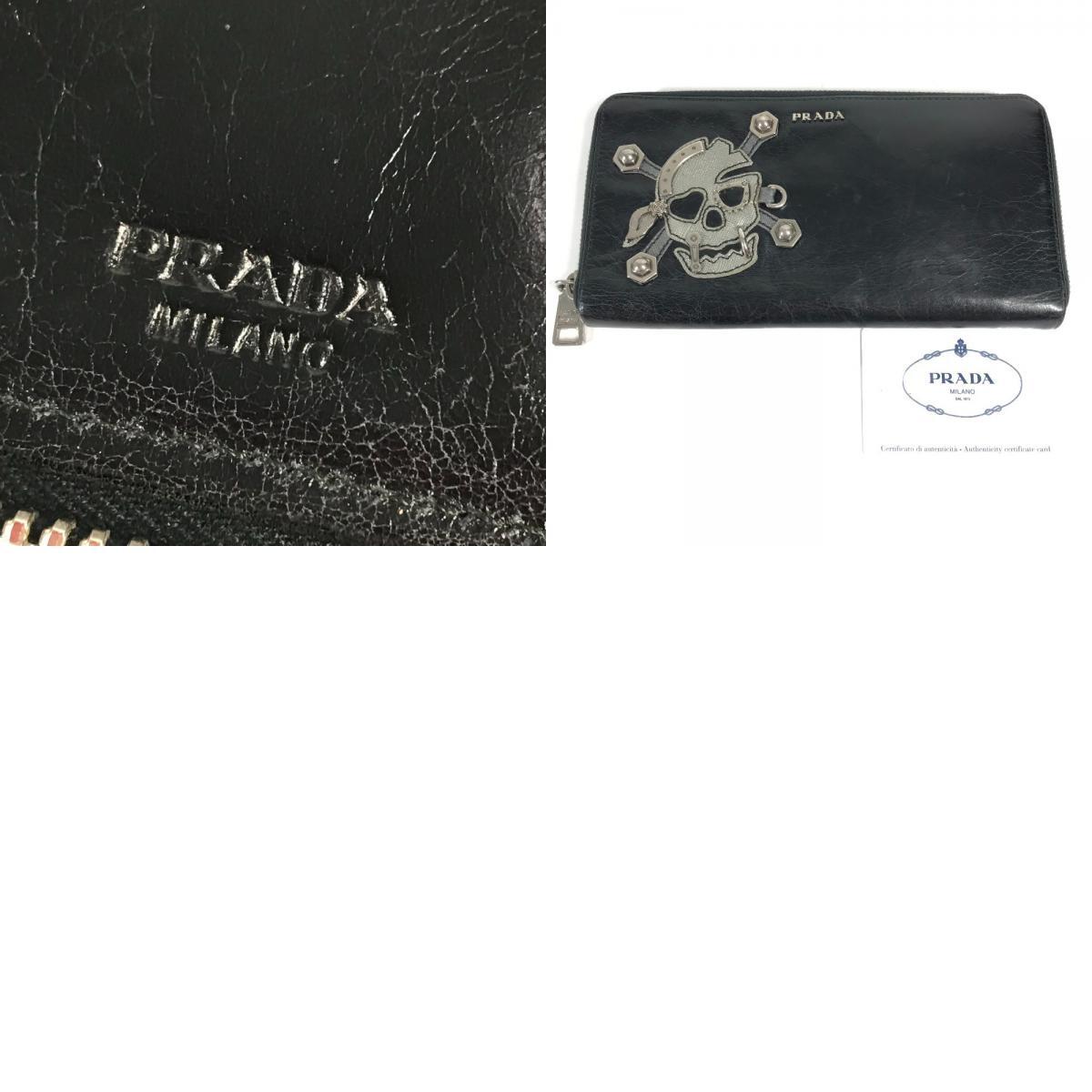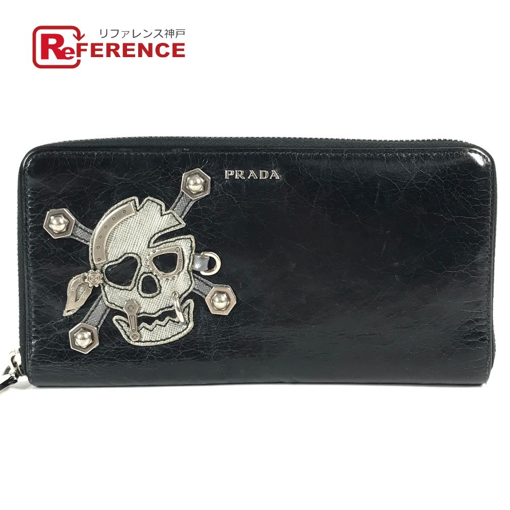 PRADA プラダ 2M1264 スカル ドクロ ロングウォレット ラウンドファスナー 長財布 ブラック ユニセックス【中古】