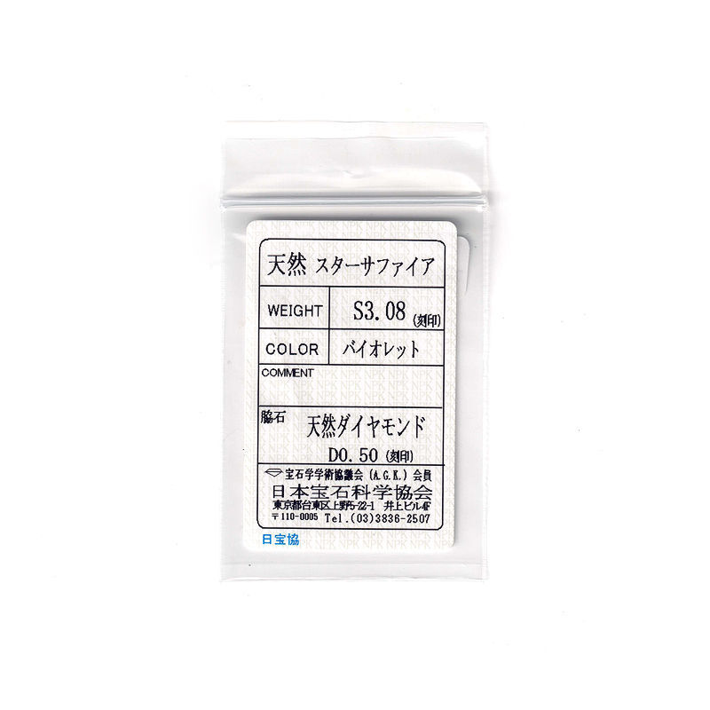 | 素材 | Pt900 スターサファイア ダイヤモンド |