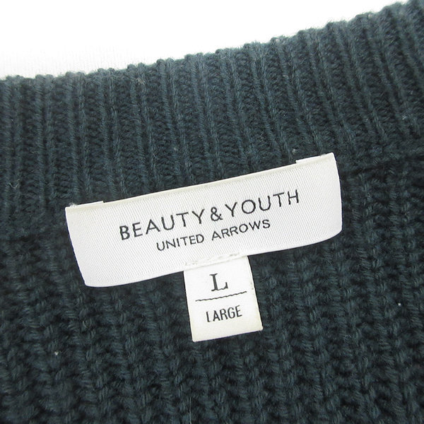 G■ユナイテッドアローズ/UNITED ARROWS B&Y ウォッシャブル アゼ ニット/セーター【L】緑/men's/8【中古】■