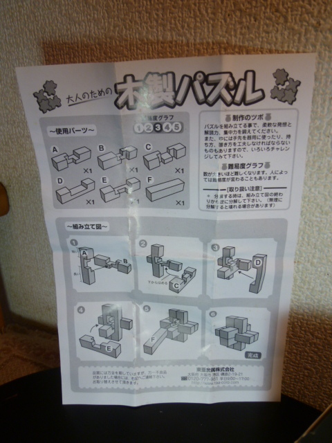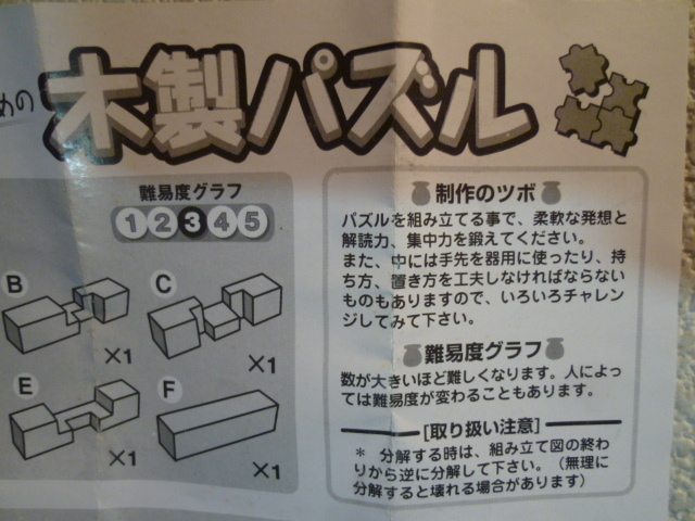 大人のための木製パズル 難易度3 新品同様・展示品F
