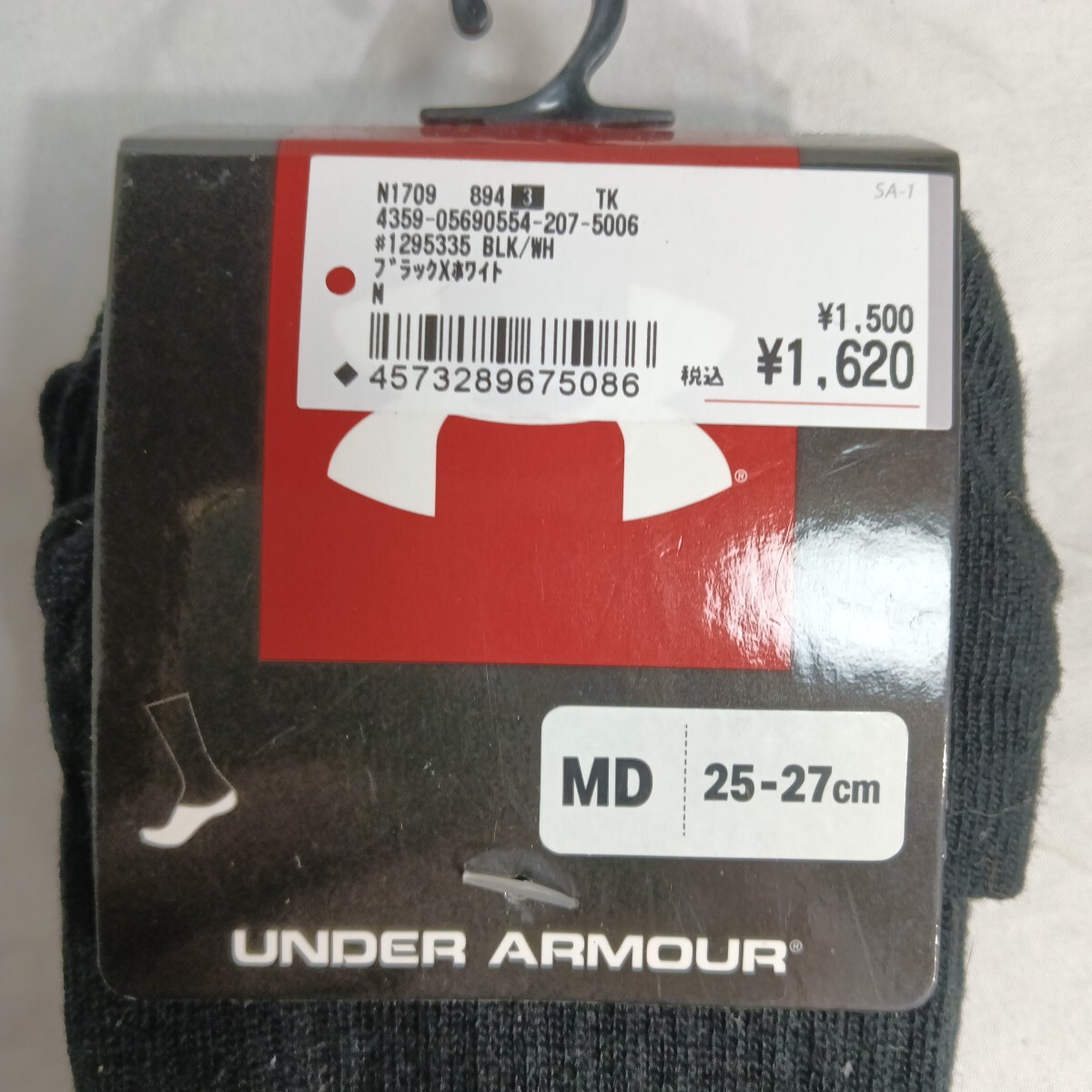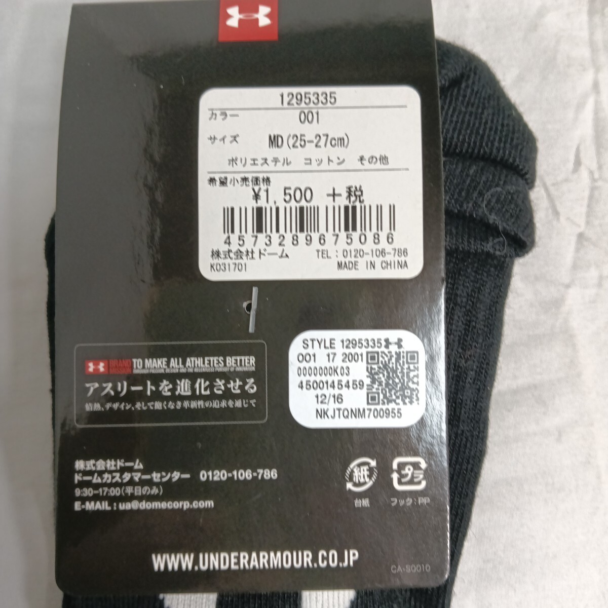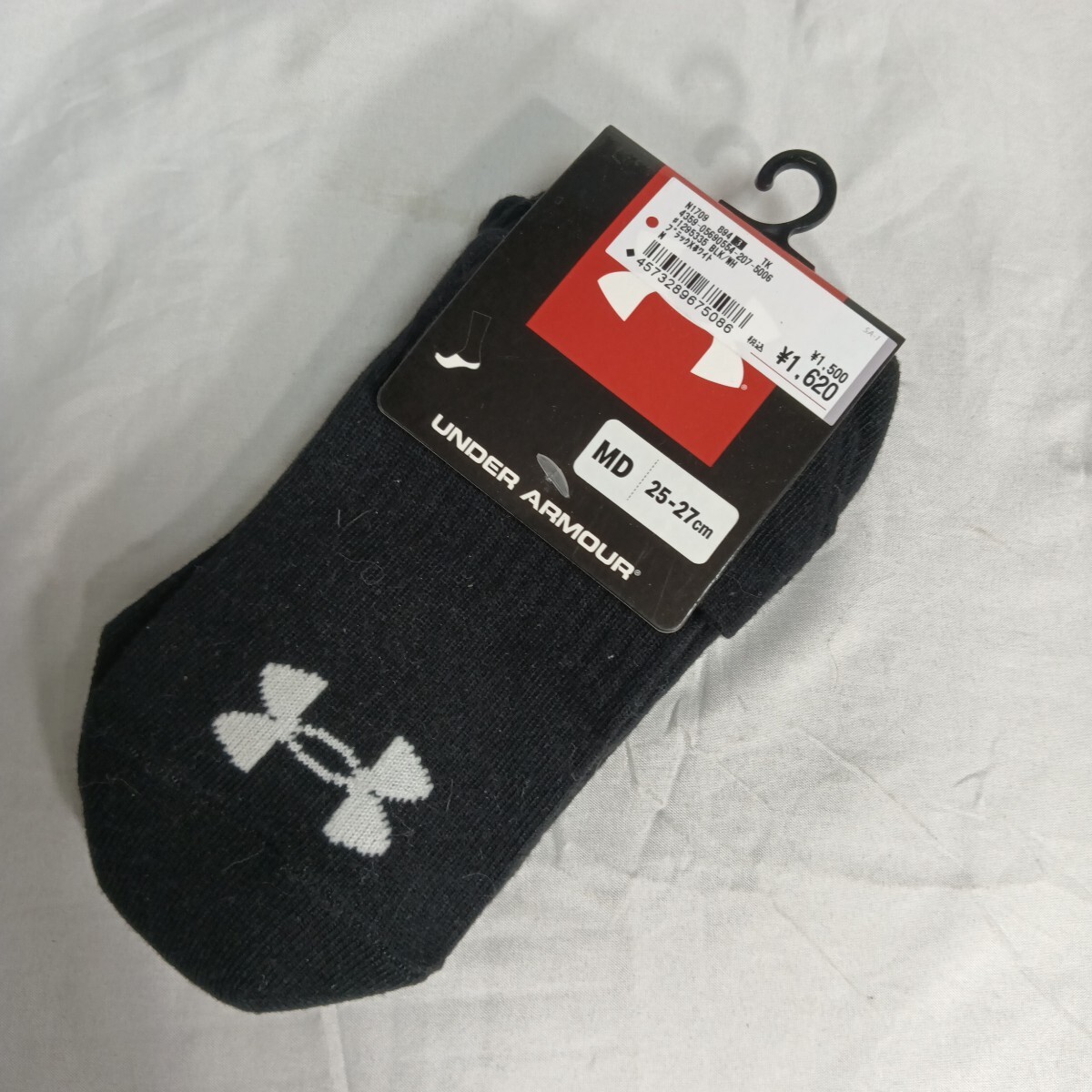 アンダーアーマー(ドーム)の靴下です。サイズは、25〜27センチです。素材は、ポリエステル、コットン、その他です。色は、黒色です。3足セットです。送料が高くなるのでバラしてお送りいたします。未使用ですが自宅保管品です。
