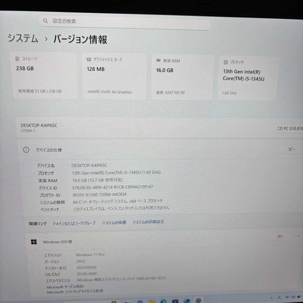・Microsoft Office 2024 Homeはインストール及びライセンス認証済みです。再インストールも可能です。
