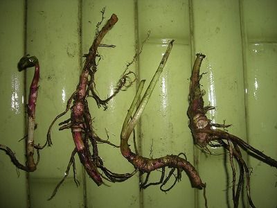 写真の苗と同等品を掘り上げて地上部を大胆に切り取り、抜き苗で発送します。(背景の人工竹の幅は5cmです)