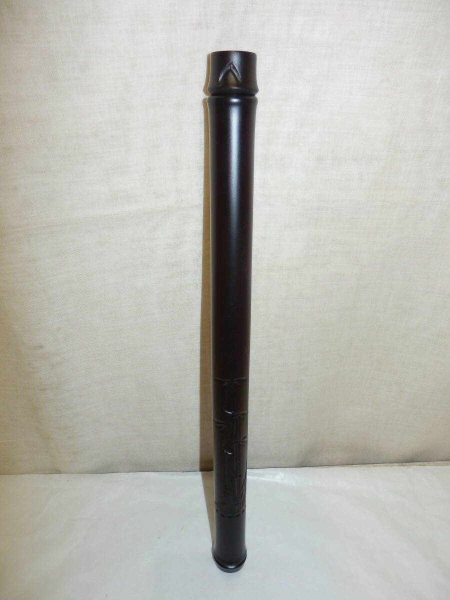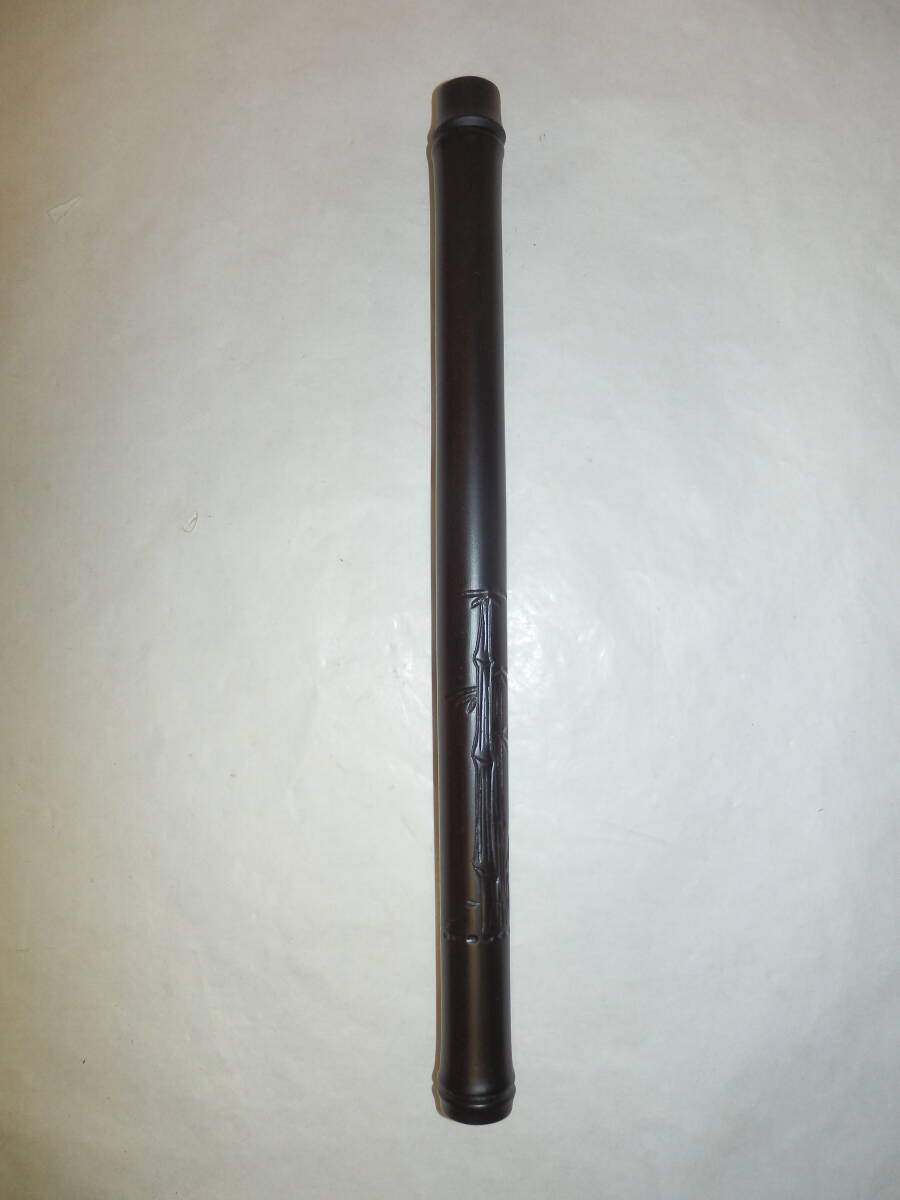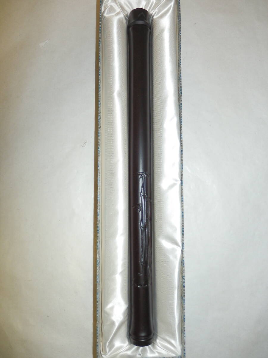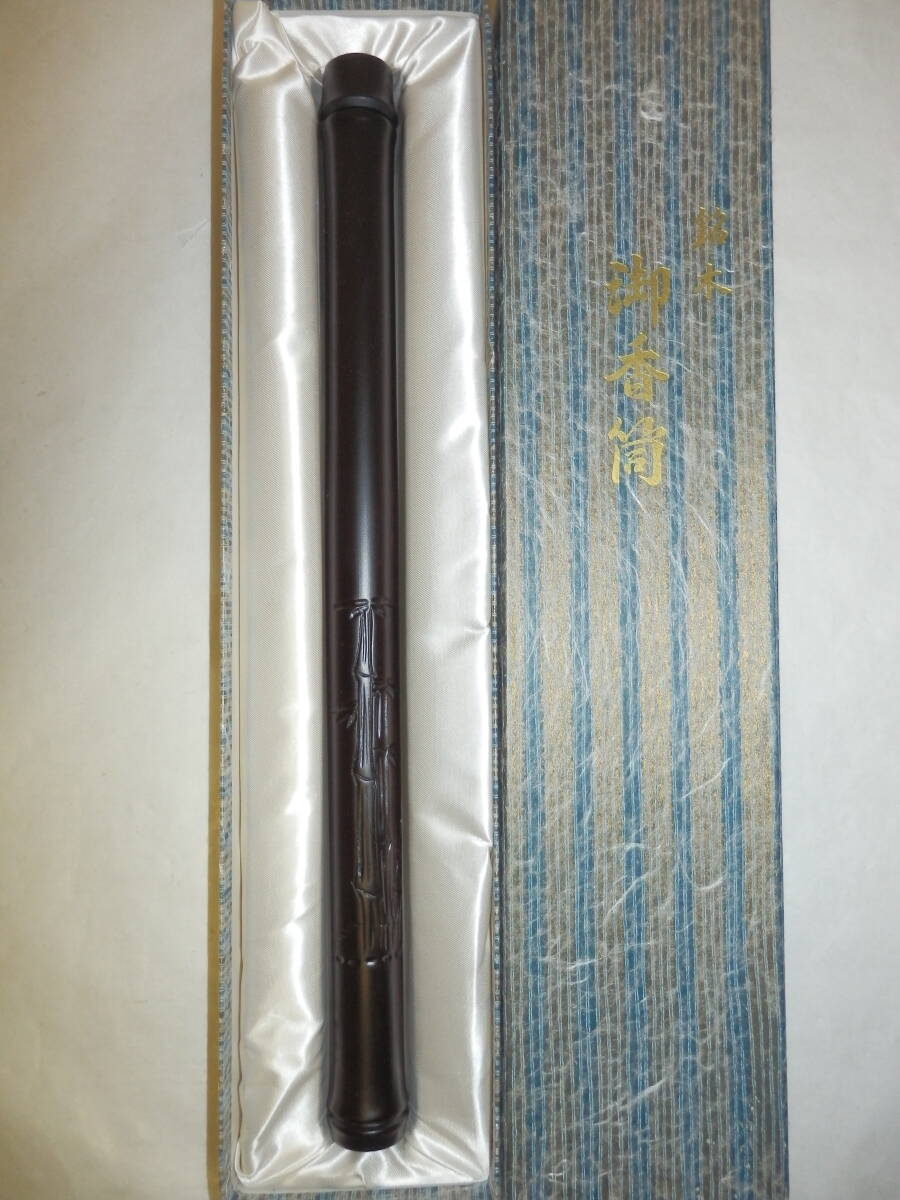 「中古品・煎茶道具」銘木・紫檀の香筒です。竹彫です。 最大径2.4cm 長さ約32.6cm 化粧箱「ヤケ、シミ等有」。 どうぞ宜しく。
