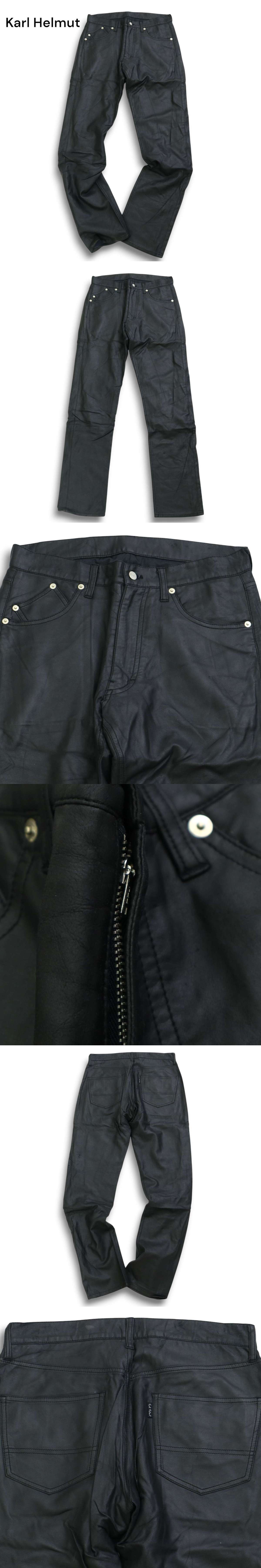 Karl Helmut カールヘルム 秋冬 ストレッチ★ フェイク レザー パンツ Sz.L メンズ 黒