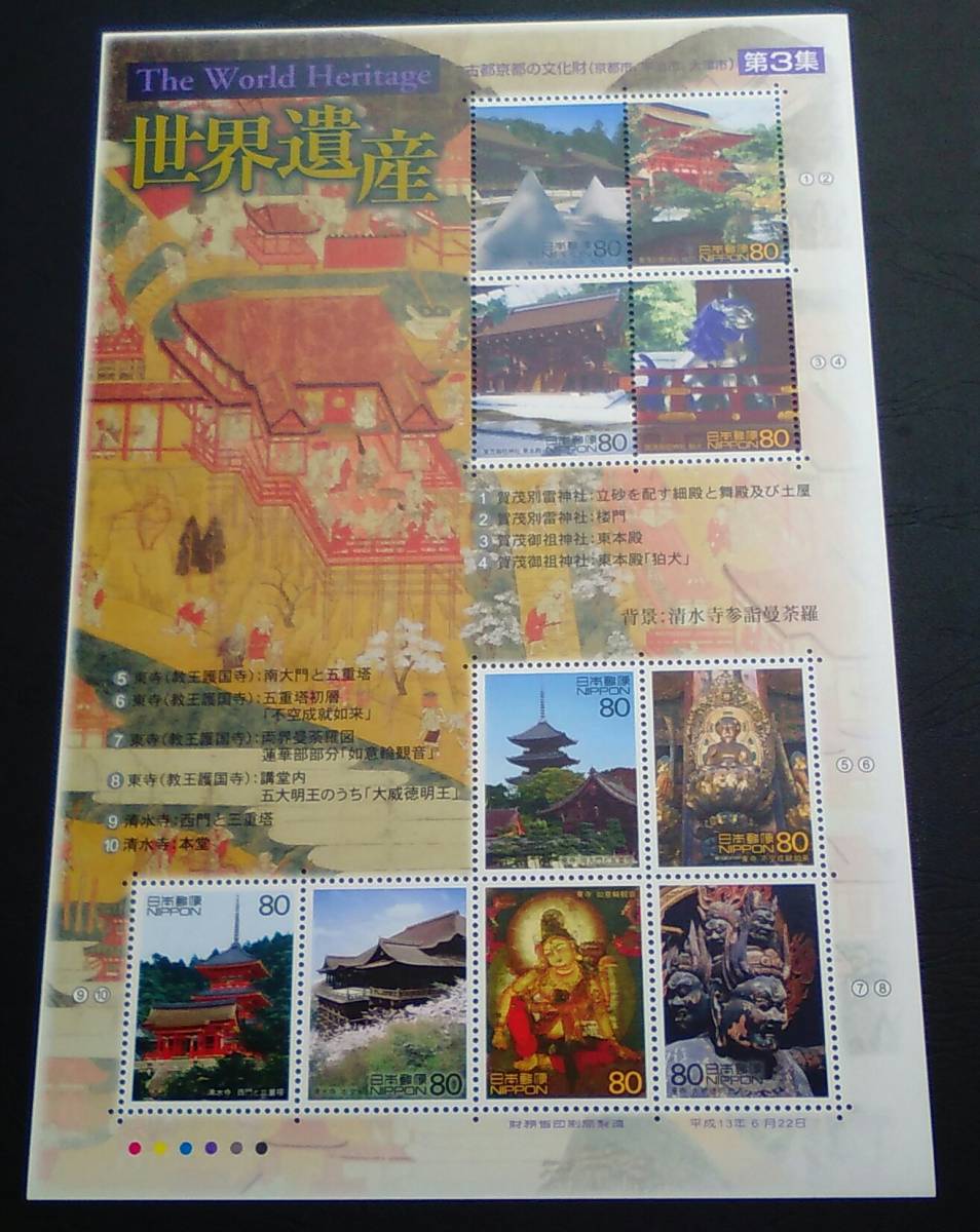 2001年・記念切手-第2次世界遺産シリーズ第3集(古都京都の文化財1)解説書付シート
