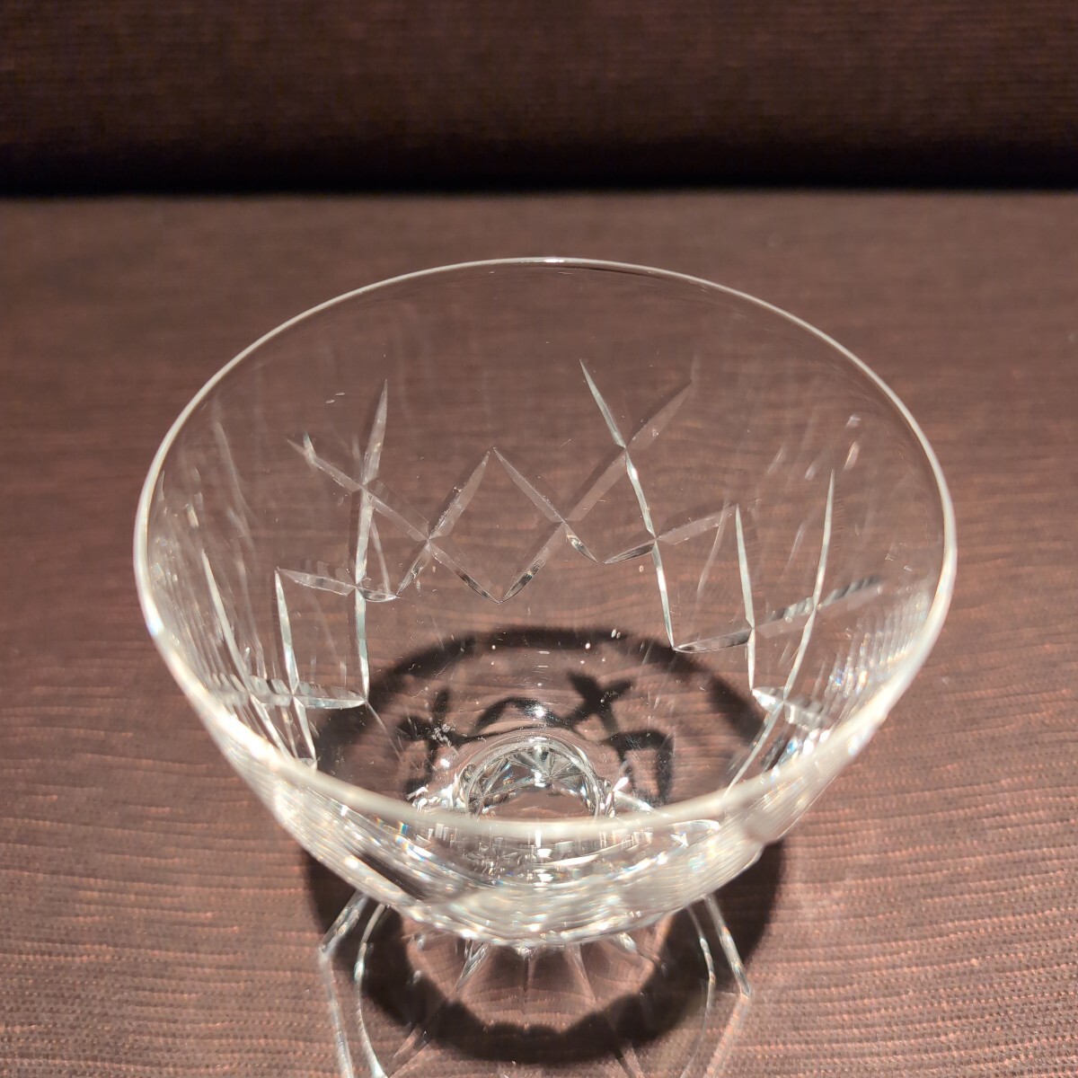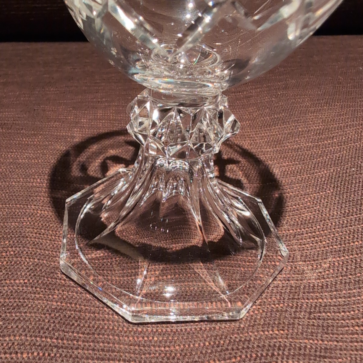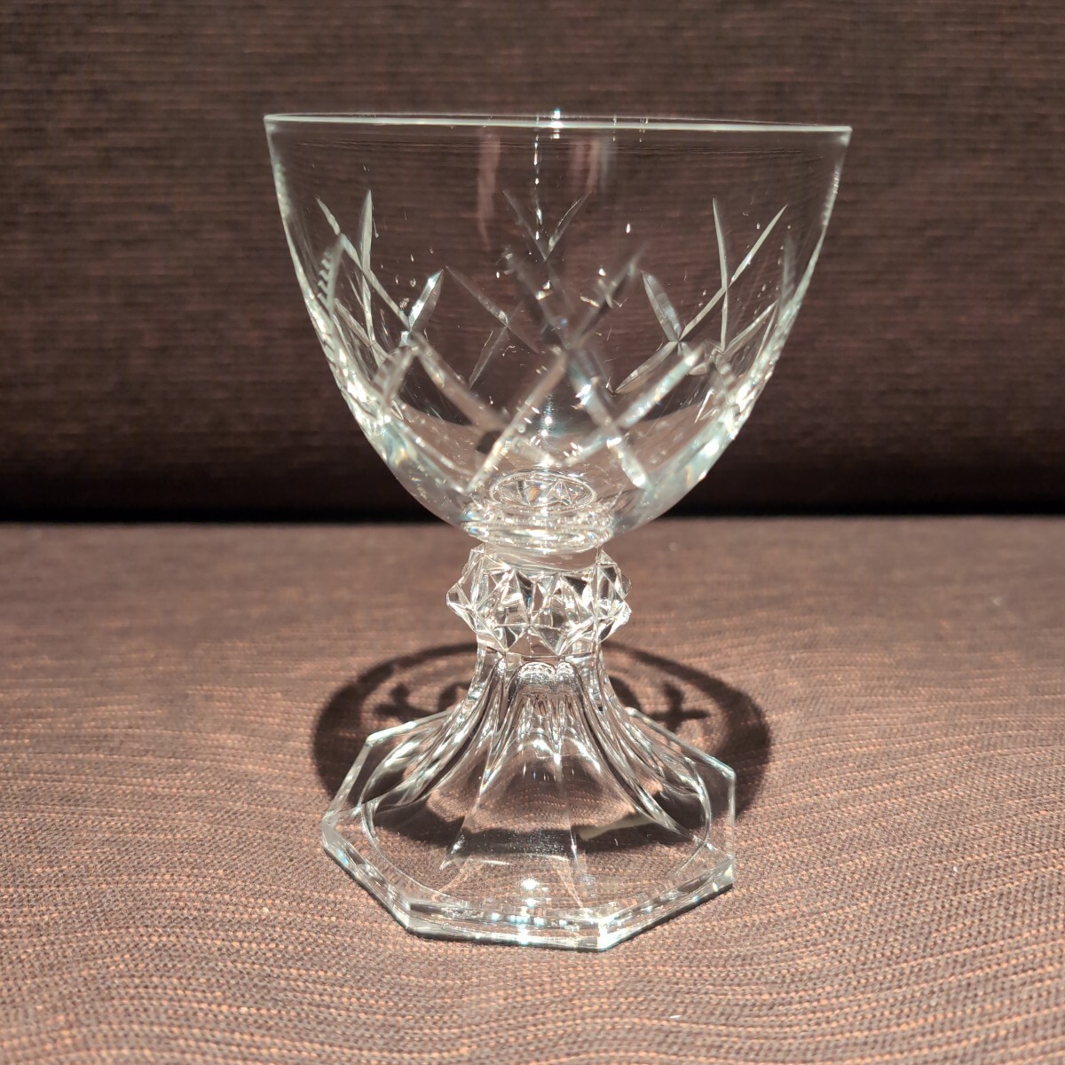 ベルギーの名門クリスタルメーカー ヴァルサンランベール社のステムグラス1点です。商品サイズは高さ約12.3センチ、口径約8.6センチです。ヴァルサンランベールのサインは入っていませんが、他のクリスタルメーカーには無いこだわりのあるデザインが素敵なグラスです。割れや欠けは勿論ございません。目立つような傷も無く、アンティークグラスとしてはとても良いコンディションです。専用の箱は付属しませんが、
