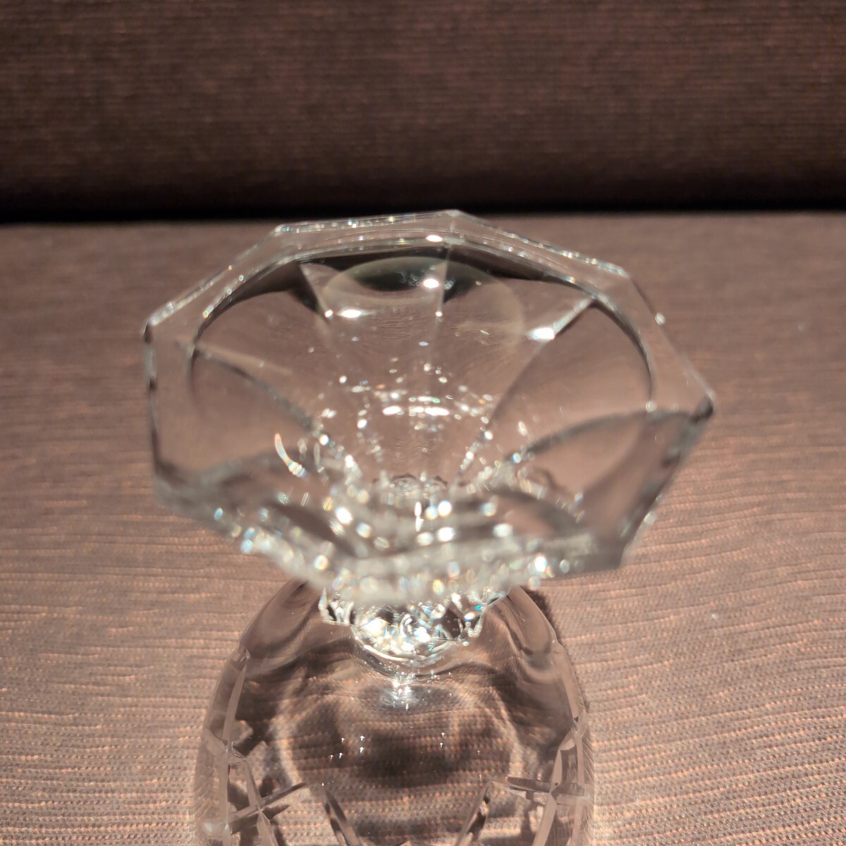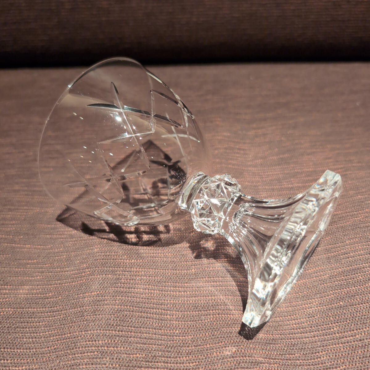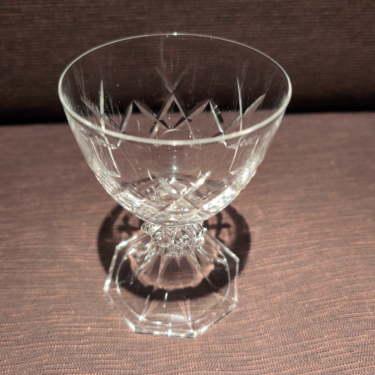 ベルギーの名門クリスタルメーカー ヴァルサンランベール社のステムグラス1点です。商品サイズは高さ約12.3センチ、口径約8.6センチです。ヴァルサンランベールのサインは入っていませんが、他のクリスタルメーカーには無いこだわりのあるデザインが素敵なグラスです。割れや欠けは勿論ございません。目立つような傷も無く、アンティークグラスとしてはとても良いコンディションです。専用の箱は付属しませんが、