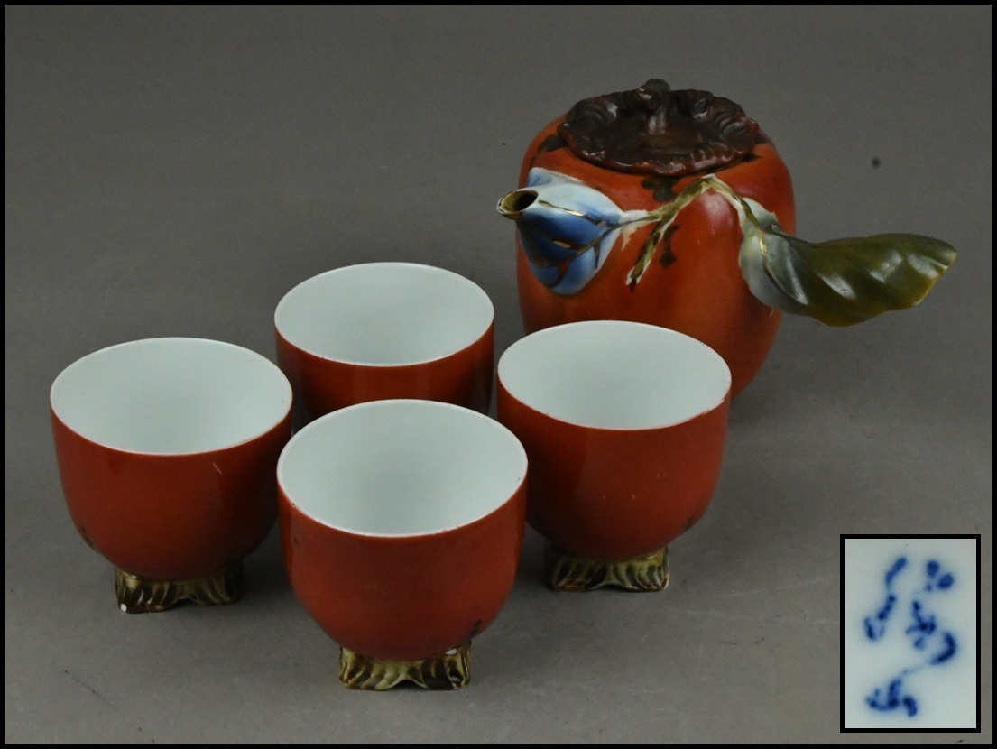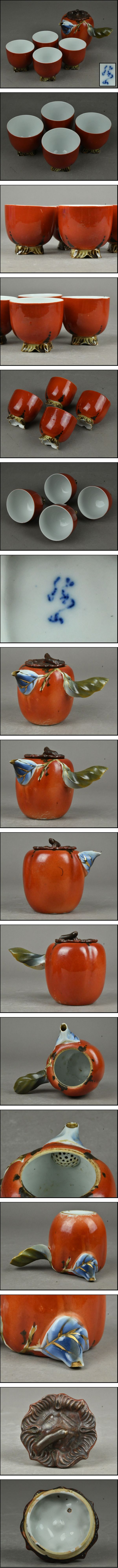 | 《品 名》:有田焼【在銘】色絵 柿型 茶器 急須 湯呑 茶道具 《寸 法》:【急須】高さ 約 11.3cm 幅 約 15.5cm 行 約 12cm 【湯呑】高さ 約 6.5cm 幅 約 6.9cm 行 約 6.9cm 《総重量》:ーg 《状 態》:経年や使用による汚れやスレ、小キズなどがございます。 画像をよくご確認ください。 骨董品、アンティークなため掃除などしておりません。ご了承ください。 使われているパソコンのディスプレイの状態により、実物と色合いが若干異なることがあります。 中古品とご理解の上ご入札をお願い致します。 | |||