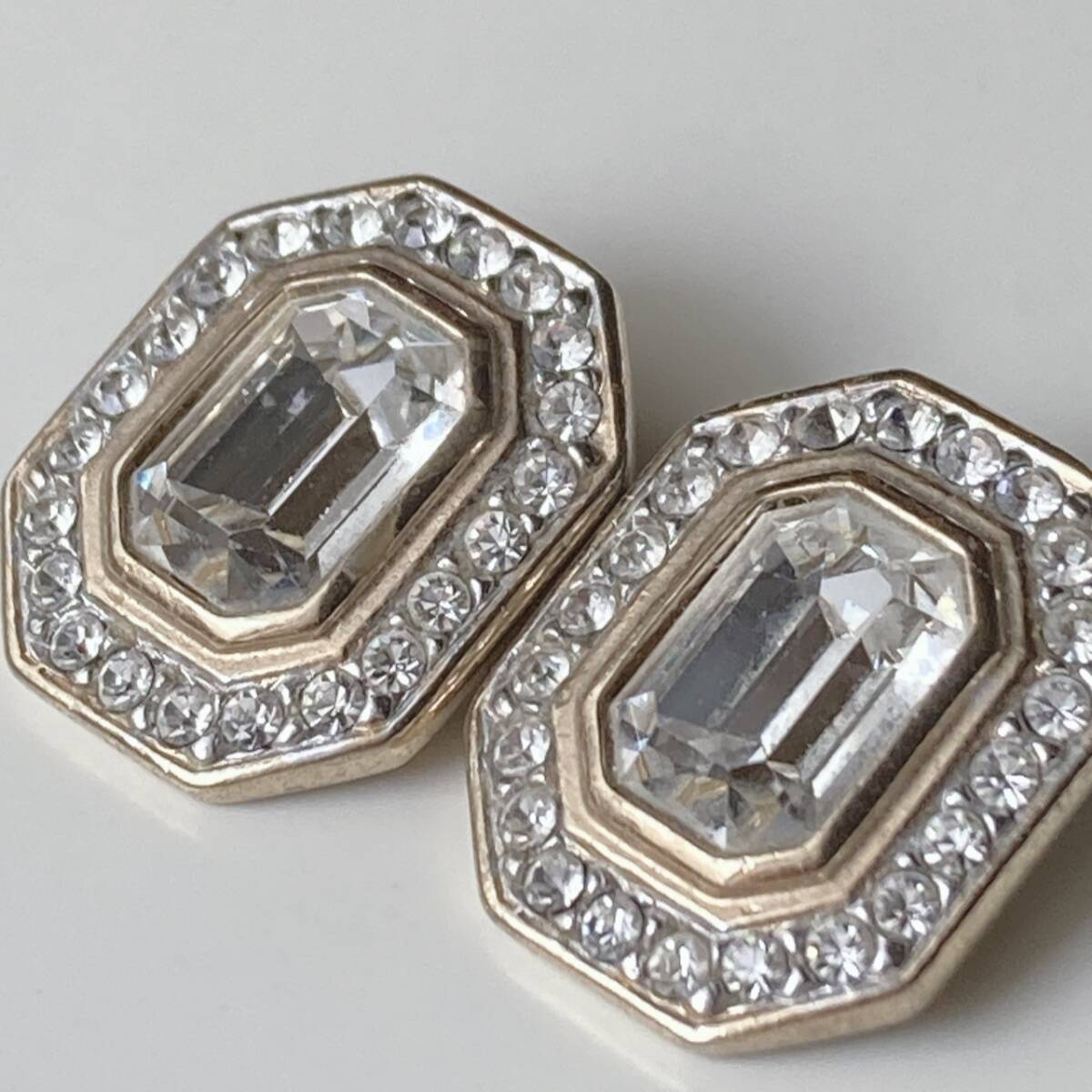 ヴィンテージイヤリング ラインストーン ゴールドトーン クリスタル ゴージャス 大ぶり☆vintage jewelry accessories F0078