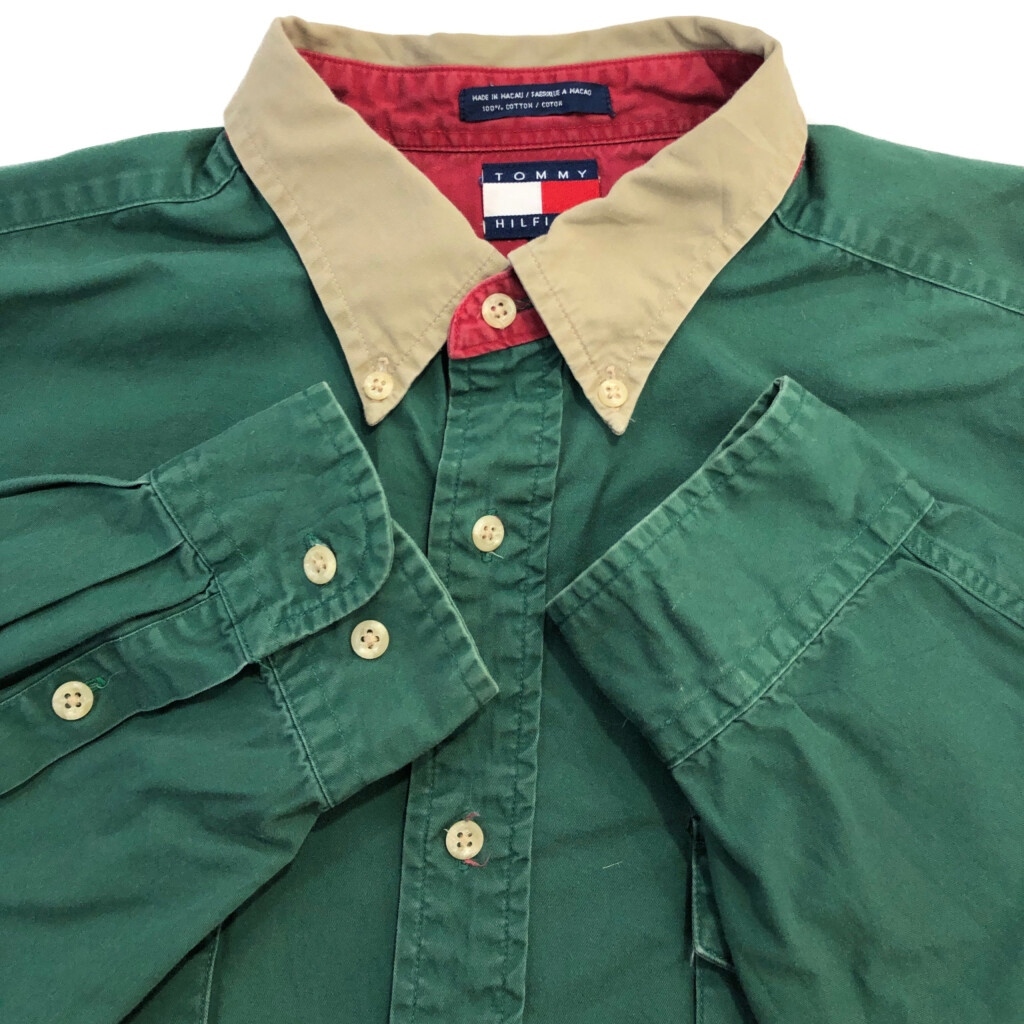 【商品管理番号】 T3942 【ブランド】 TOMMY HILFIGER/トミーヒルフィガー 【サイズ】 XL 【実寸サイズ】 肩幅:約57cm 着丈:約82cm 身幅:約66cm 袖丈:約60cm 【主な素材】 表地 : コットン 【色】 グリーン 【仕様】 【状態】 汚れ:袖先、裾 特記事項:色褪せ |