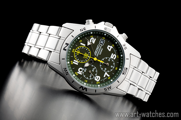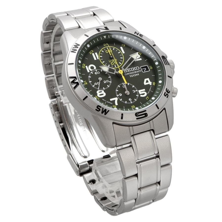 1円 セイコー 正規品 海外モデル SEIKO 緑 グリーン 逆輸入 100m防水 クロノグラフ 新品 腕時計