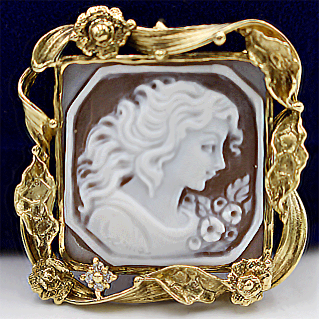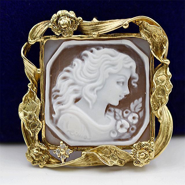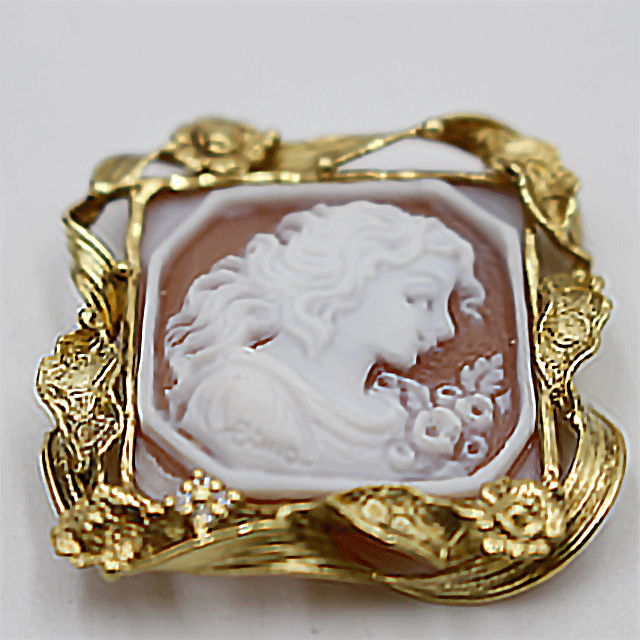 K18シェルカメオ ペンダント 10.1g D:0.05ct |
