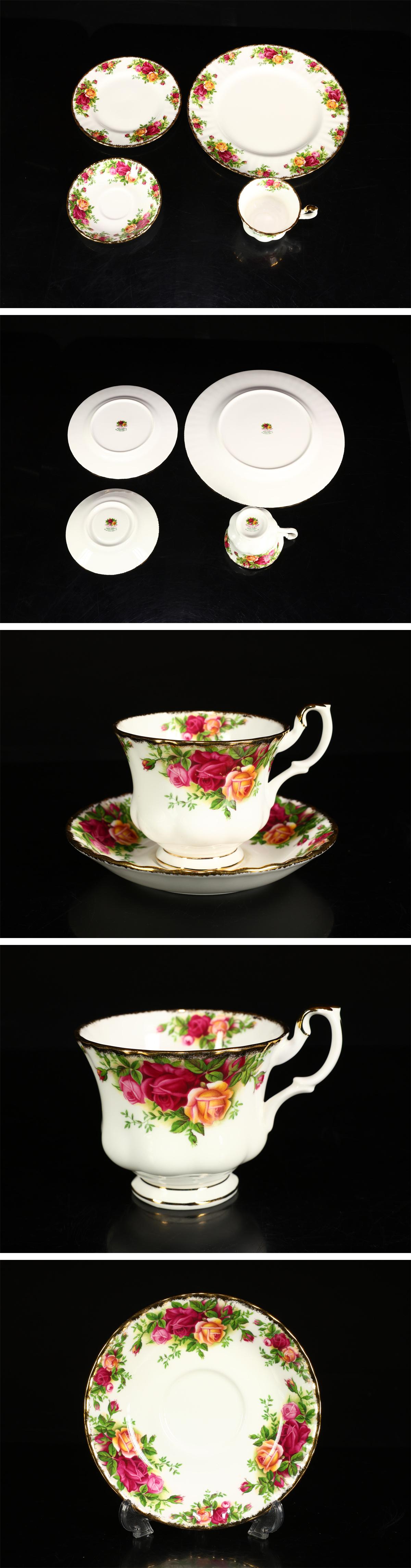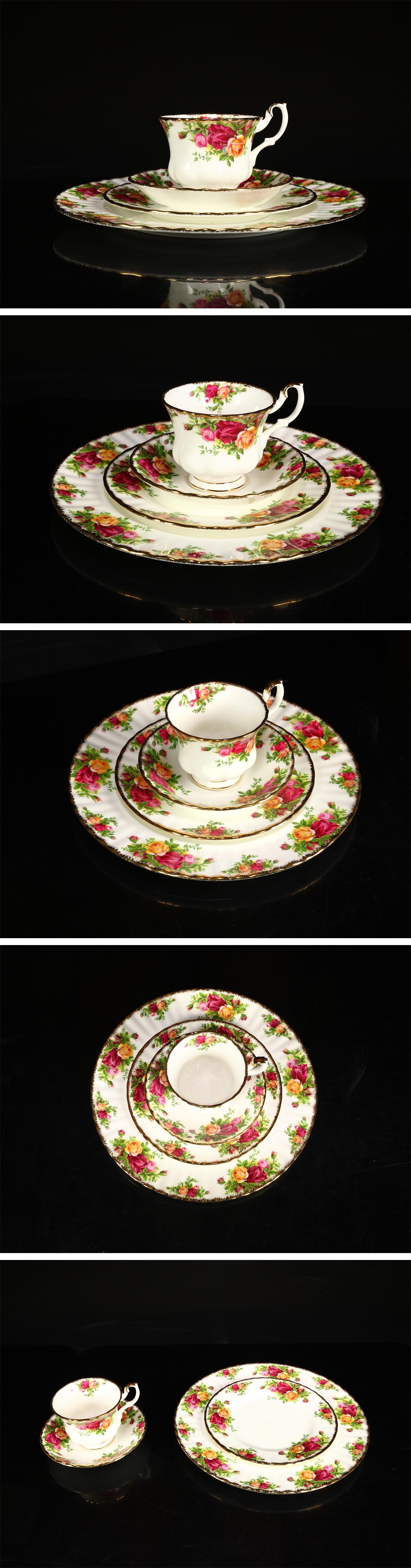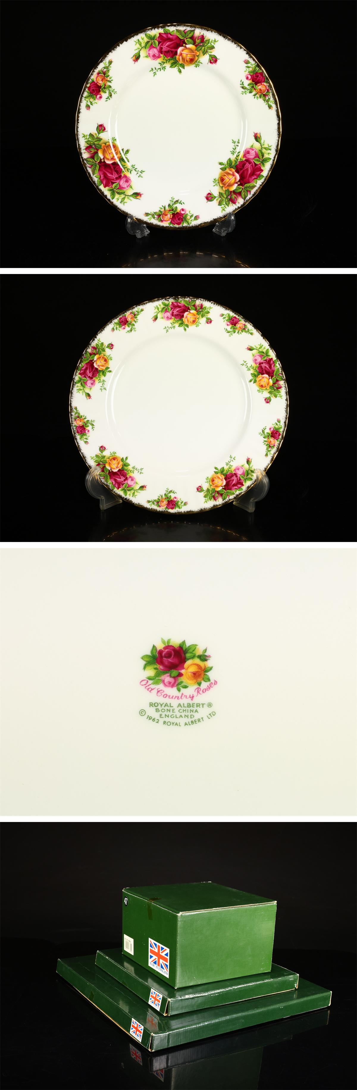 久1132 ROYAL ALBERT 【ロイヤルアルバート】 Old Country Roses 赤薔薇紋 カップ&ソーサー プレート 4点セット 共箱付 未使用品①